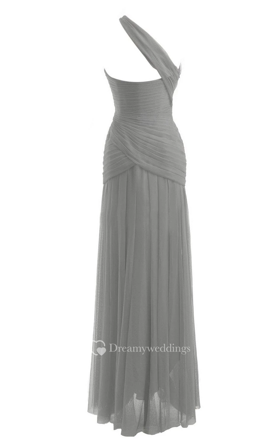 One-shoulder Asymmetrical Long Ruched Chiffon Dress