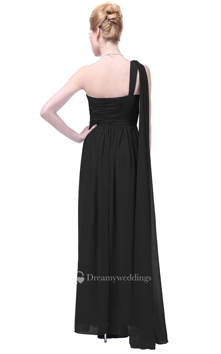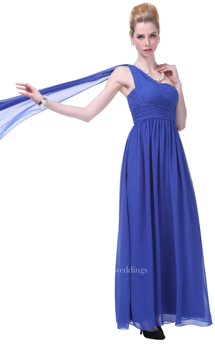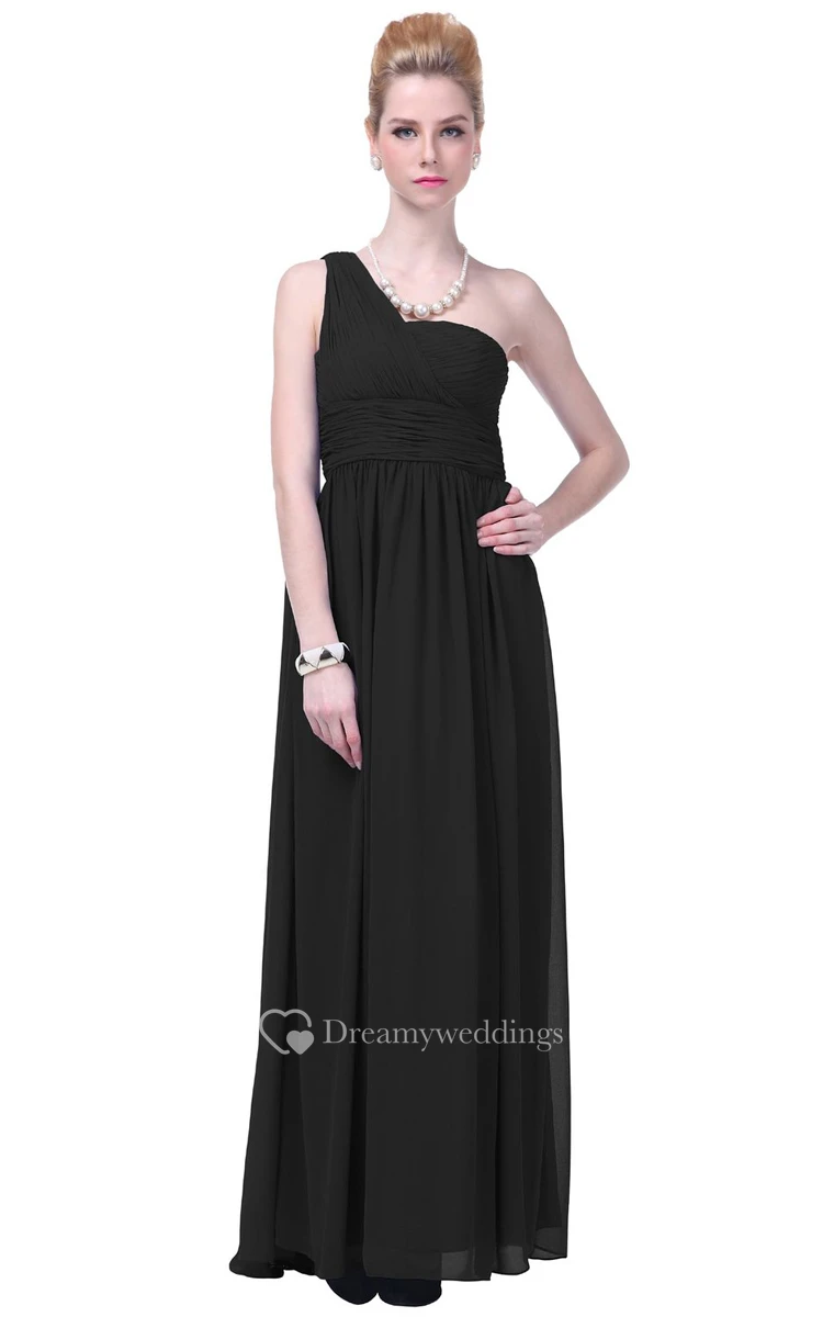 One-shoulder Basque Waist Ruffle Chiffon Dress