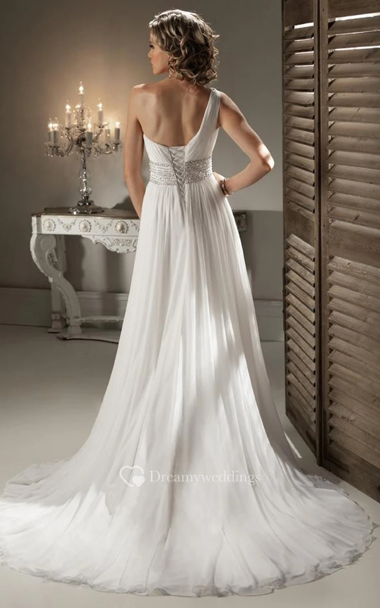 Till now, I could not forget how it made me feel when I tried it on for the first time. I prefered one-shoulder wedding dress I decided to buy when I saw it for the first time. Later, it proved that I chose the right one. It wore so comfortable and soft. The crytal girdling around waist was really a perfect embellishment. I had to say 'love' to this amazing dress!