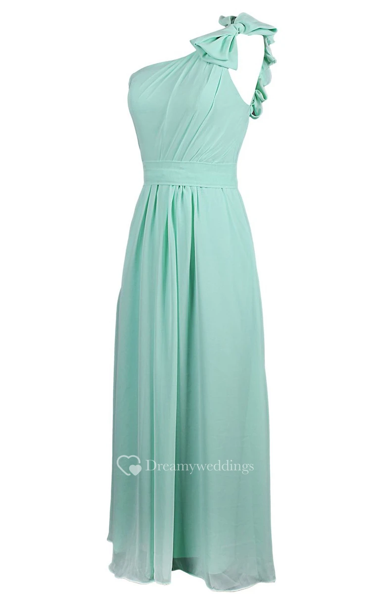 One-shoulder Chiffon A-line Gown With Bow