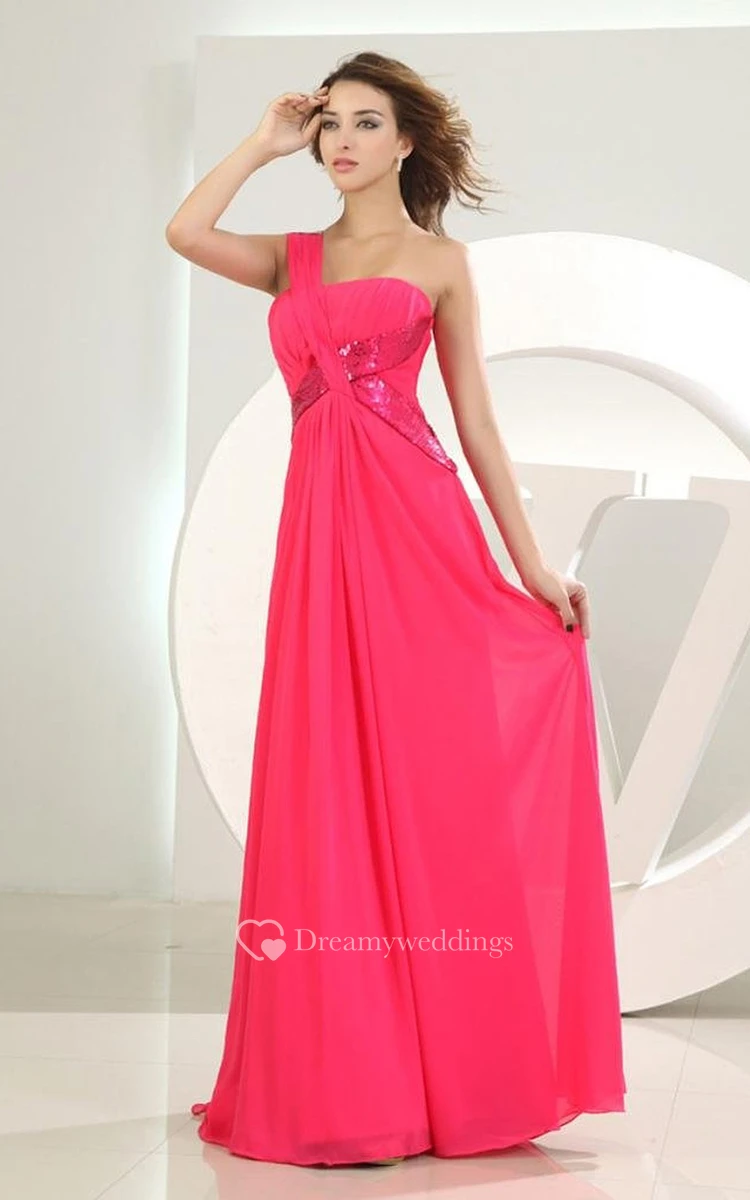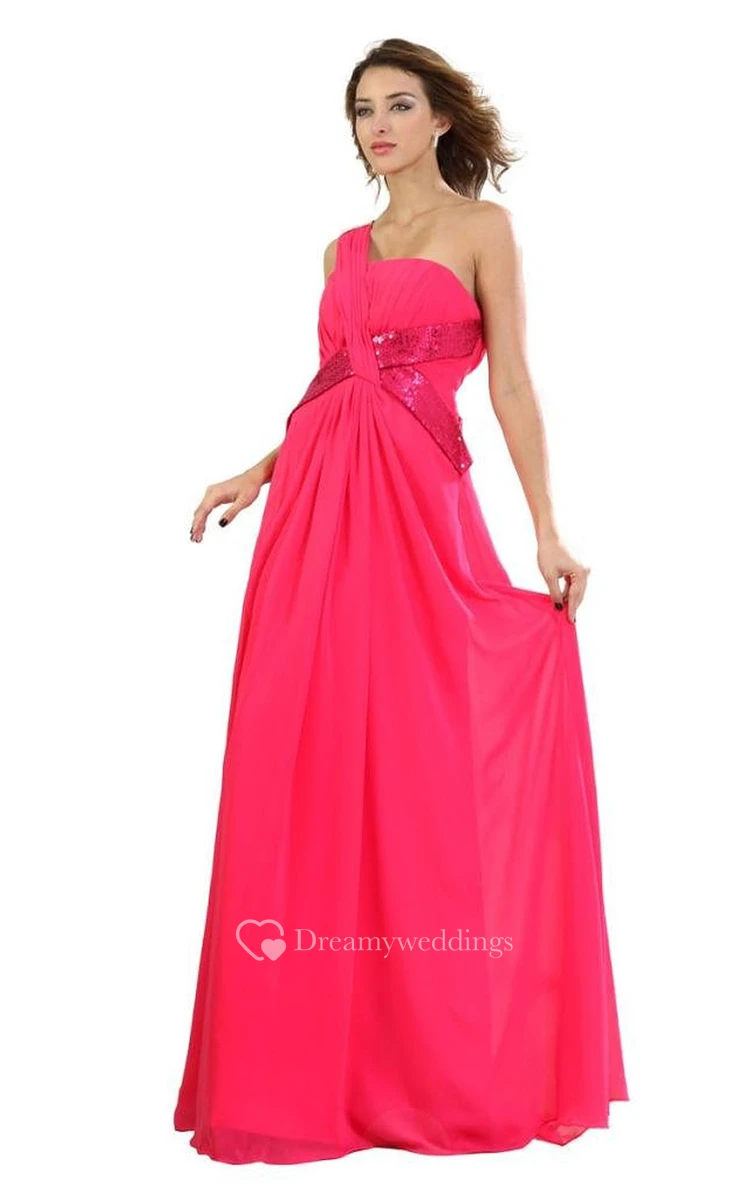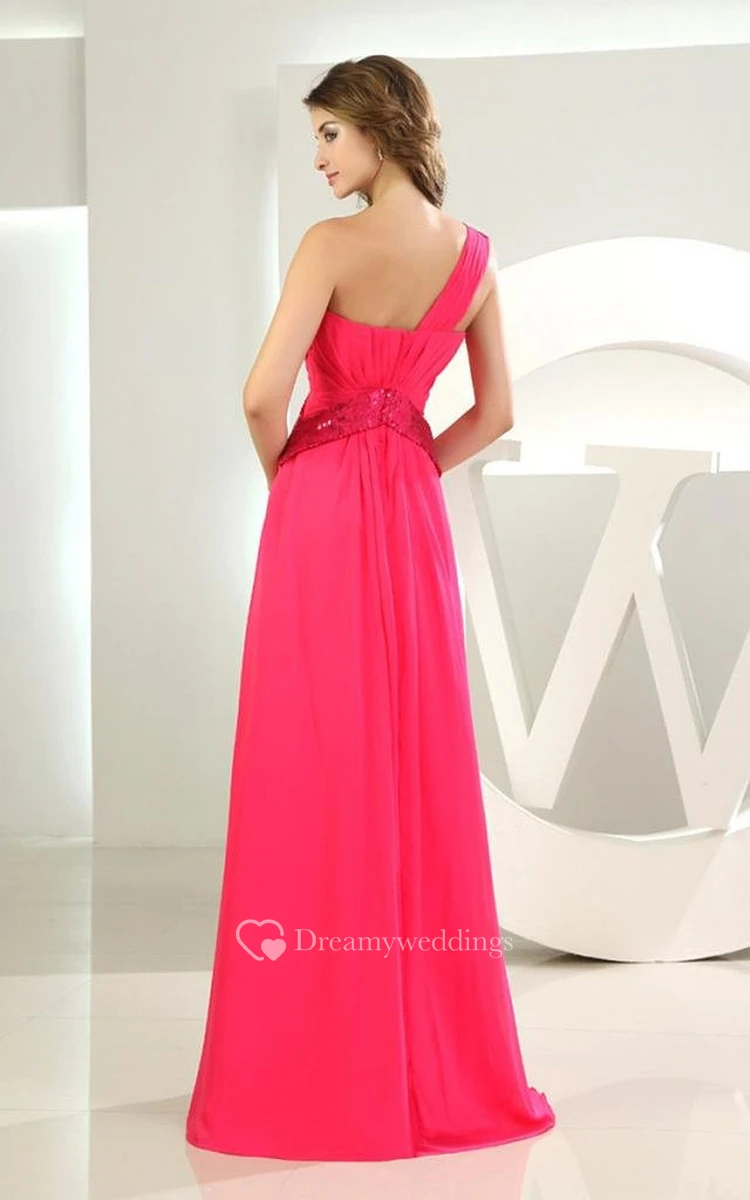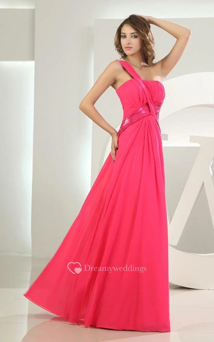 One-shoulder Chiffon Dress With Satin Cross Belt