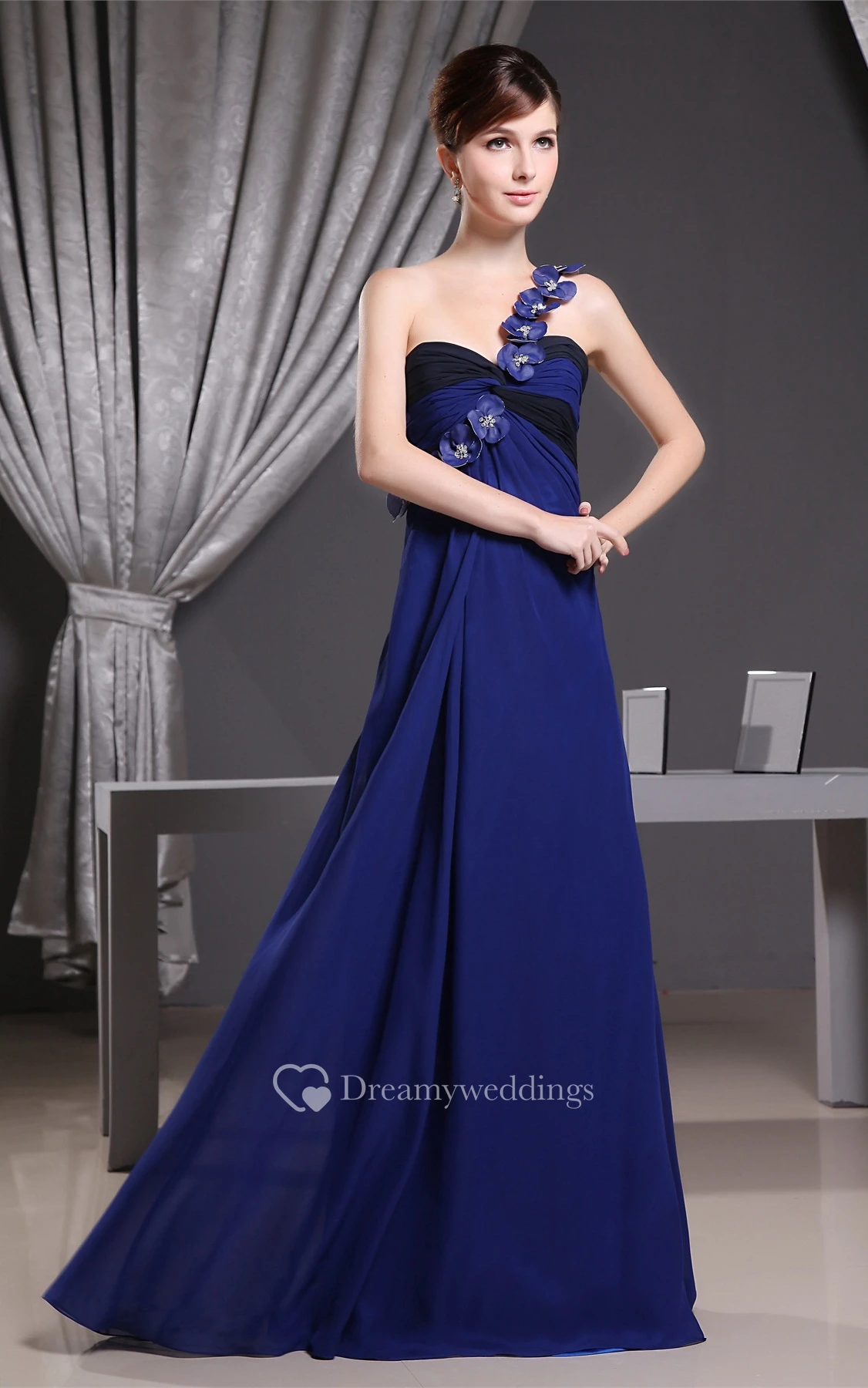 One-Shoulder Chiffon Maxi Ruched Dress With Flower