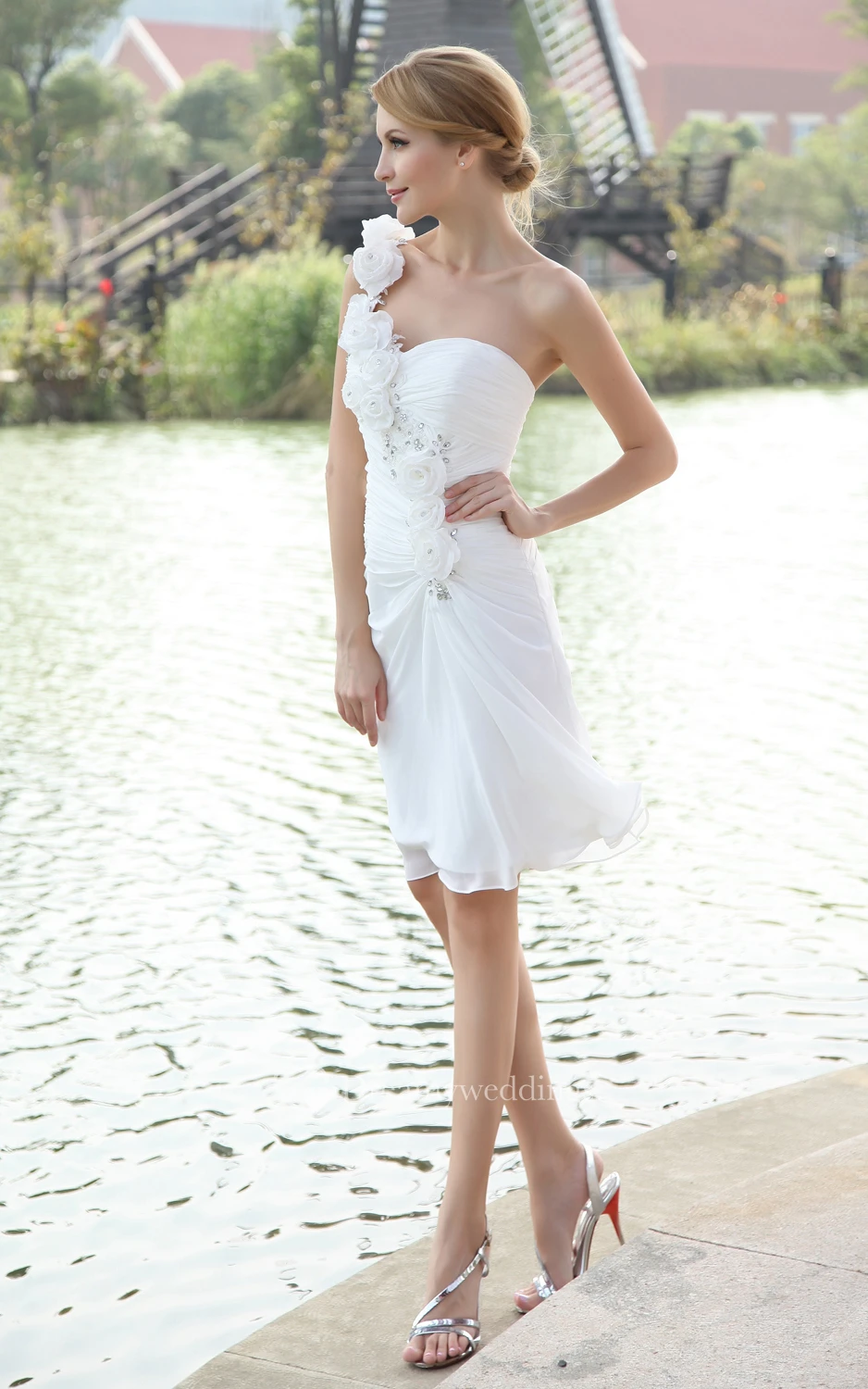 One-Shoulder Chiffon Short Dress With Floral Strap