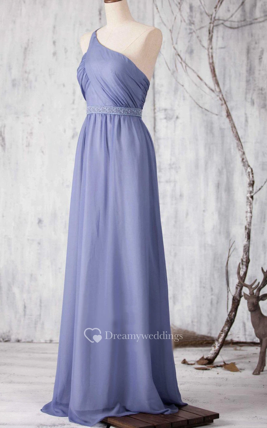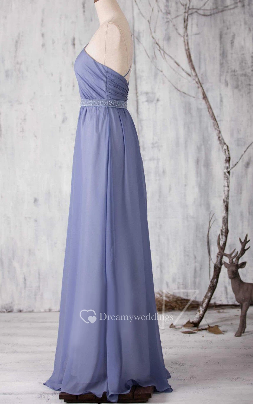 One Shoulder Criss Cross Bodice A-line Chiffon Long Dress With Beading