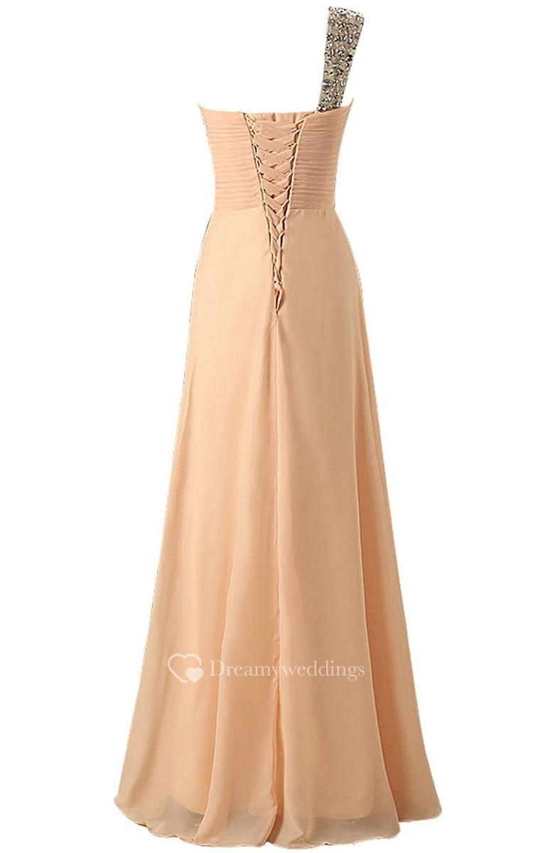 One-shoulder Crystal-beaded A-line Dress With Lace-up Back