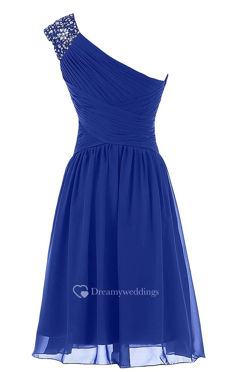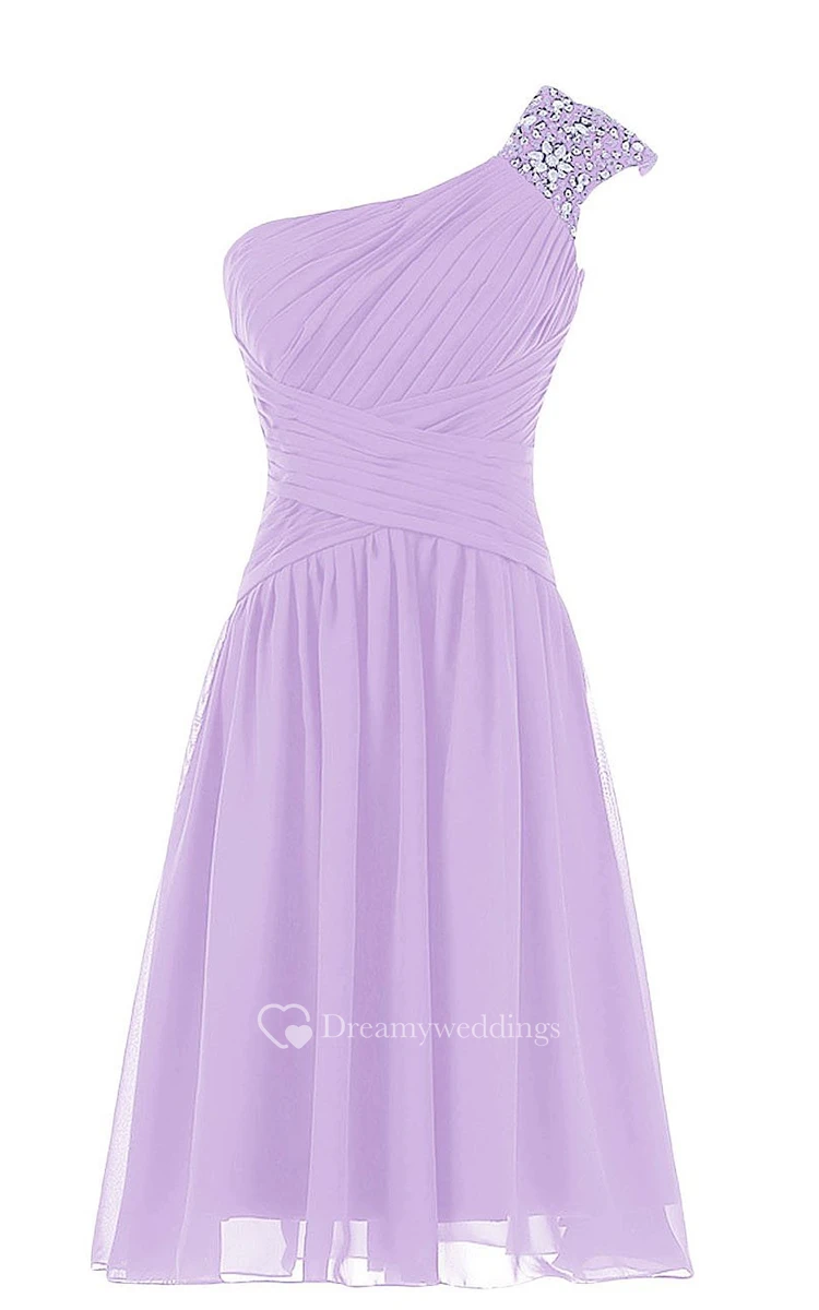One-shoulder Crystal-beaded A-line Gown With Criss-cross