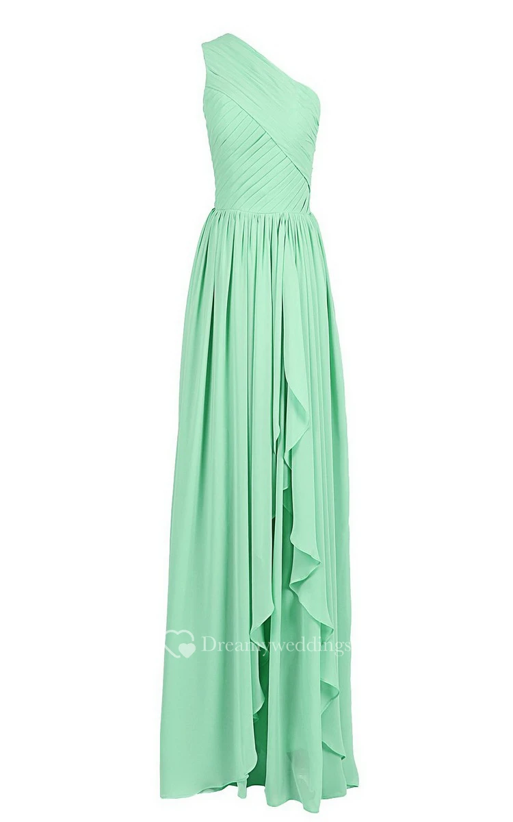 One-shoulder Drapped Chiffon A-line Gown With Pleats