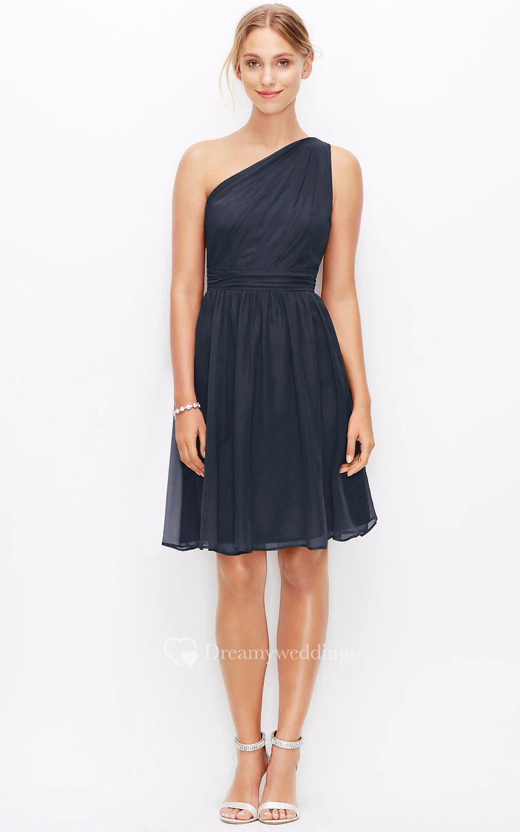 One-Shoulder Dress With Ruching And Pleats