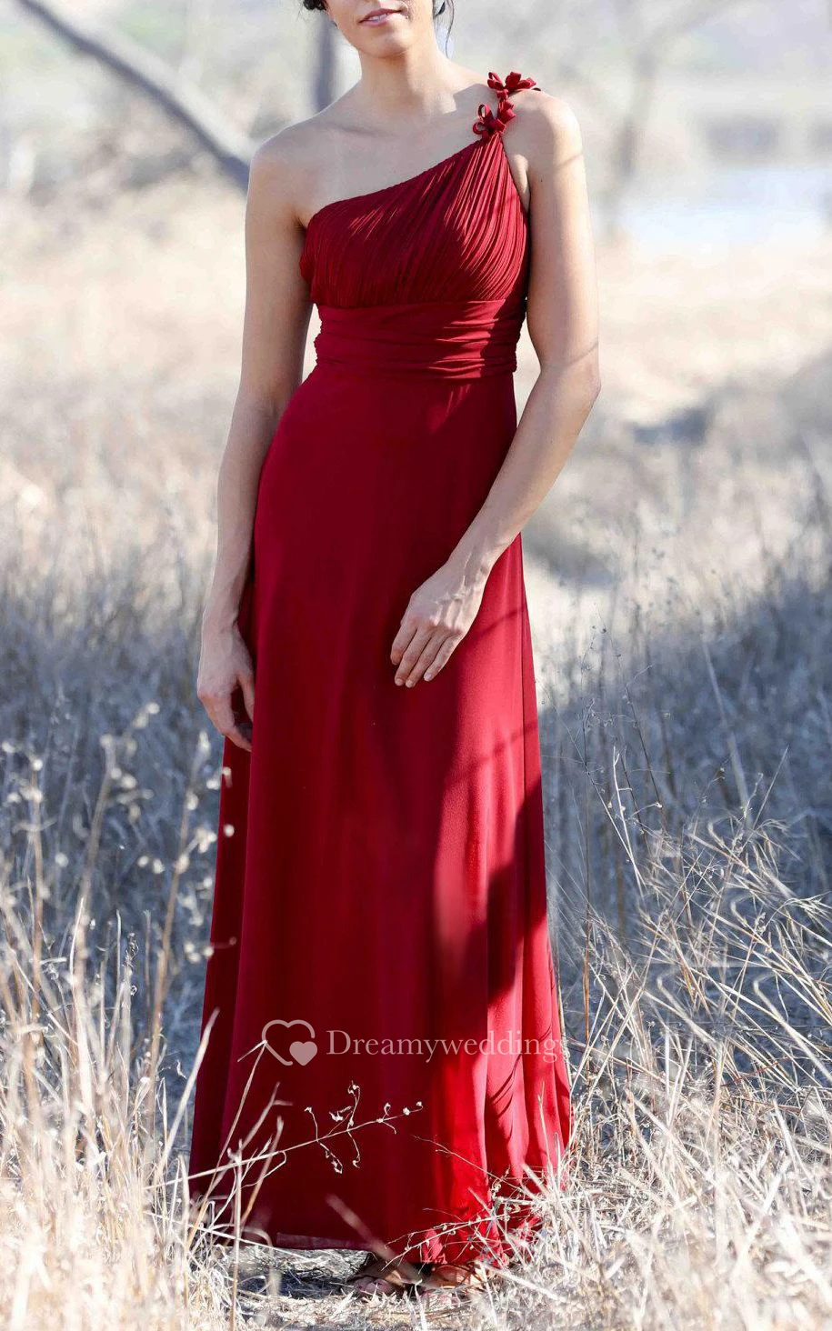 One-shoulder Empire A-line Chiffon Floor Length Dress With Ruching