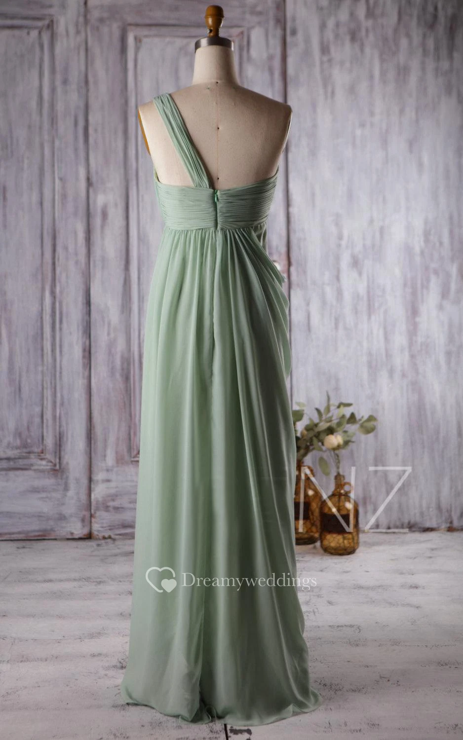 One-Shoulder Empire Dress With Draping And Appliques