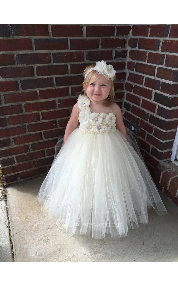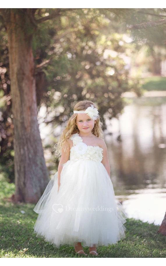One-shoulder Empire Layered Tulle Ball Gown With Flowers