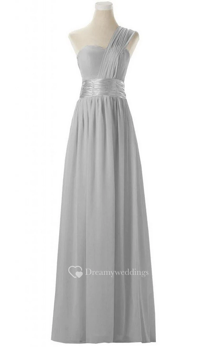 One-shoulder Emprie Chiffon Gown With Ruched Strap