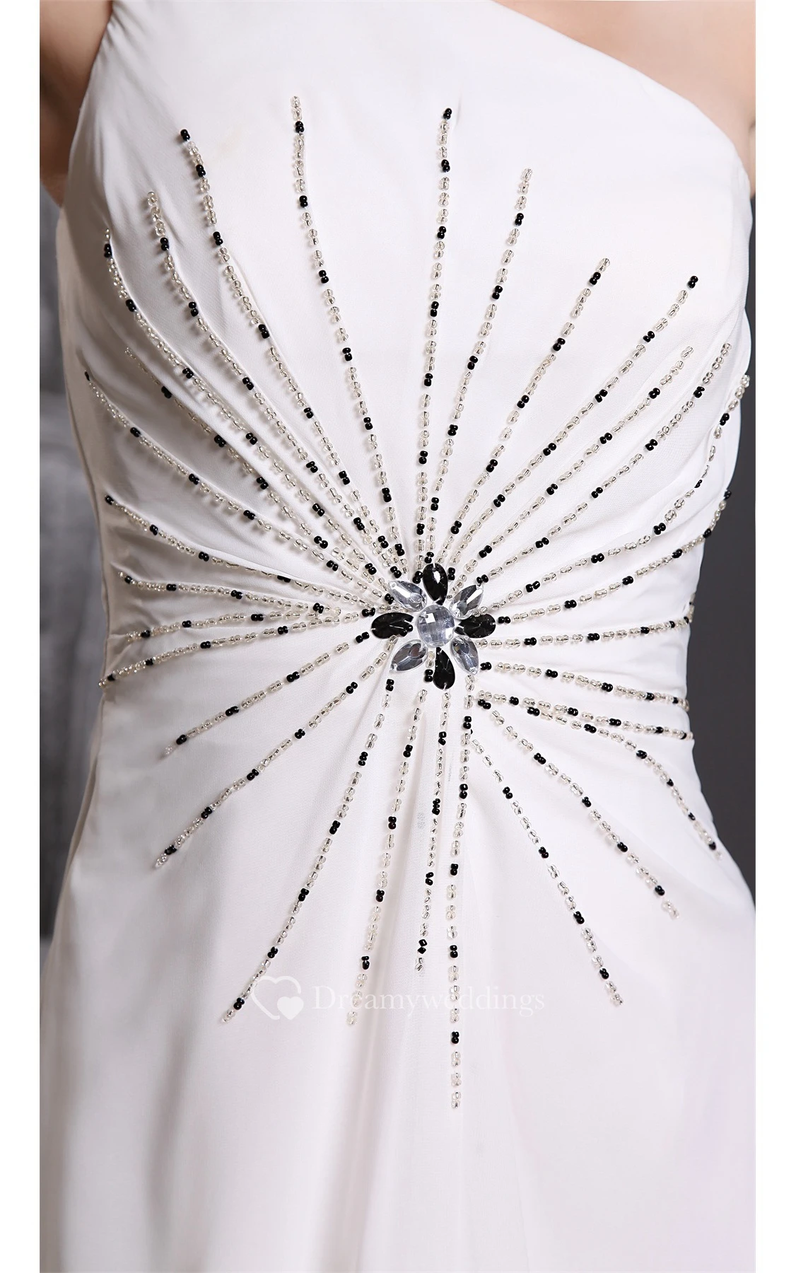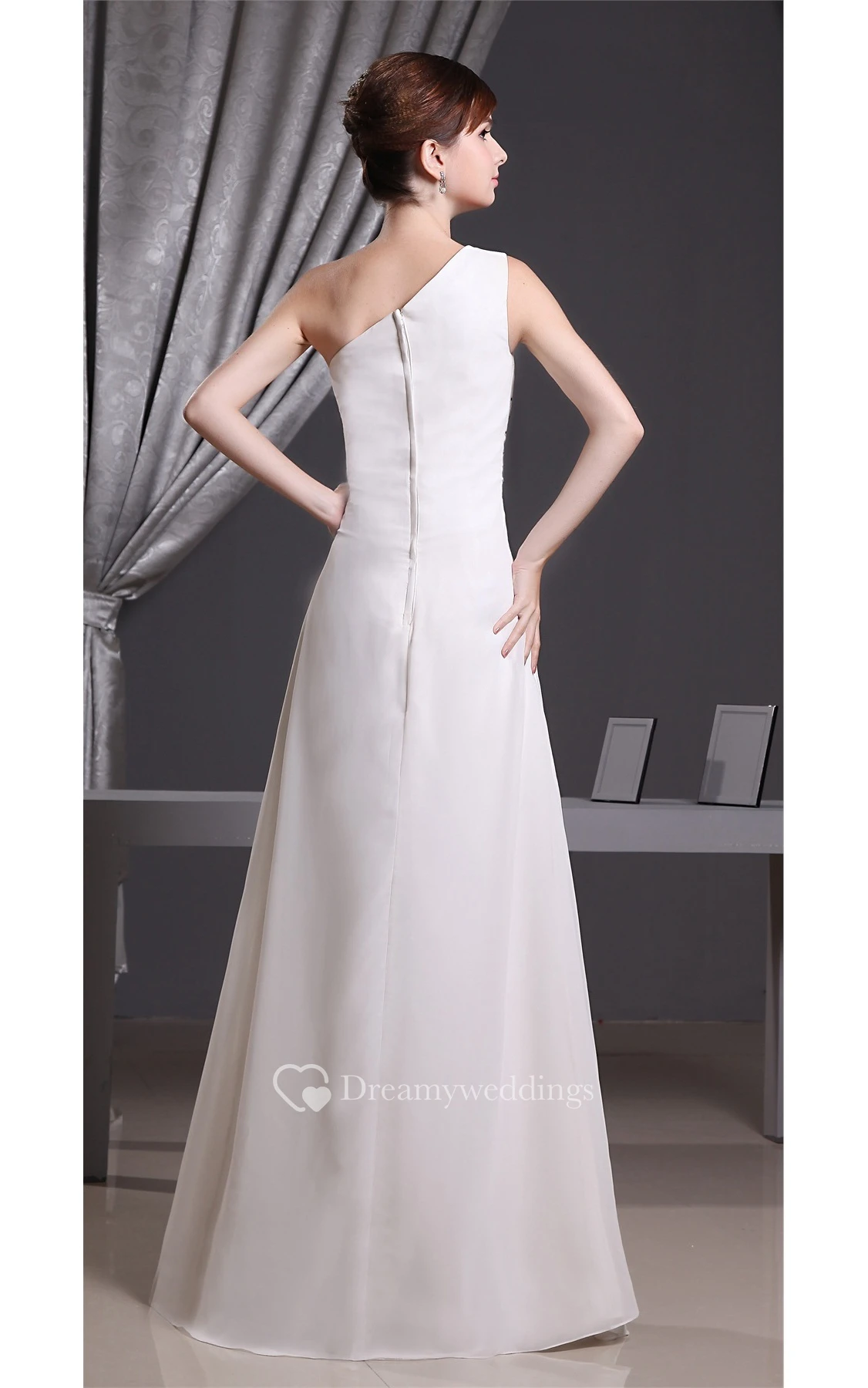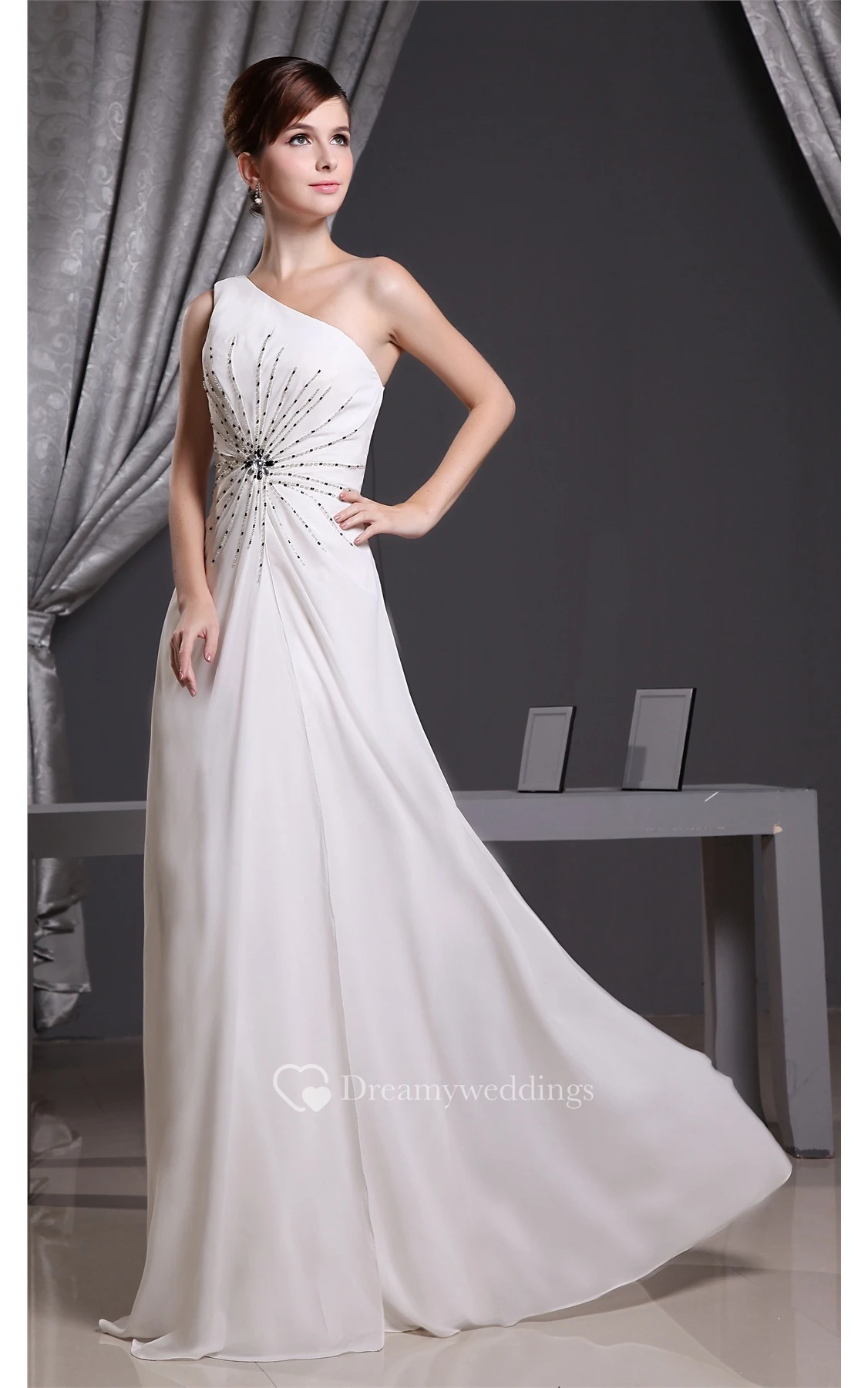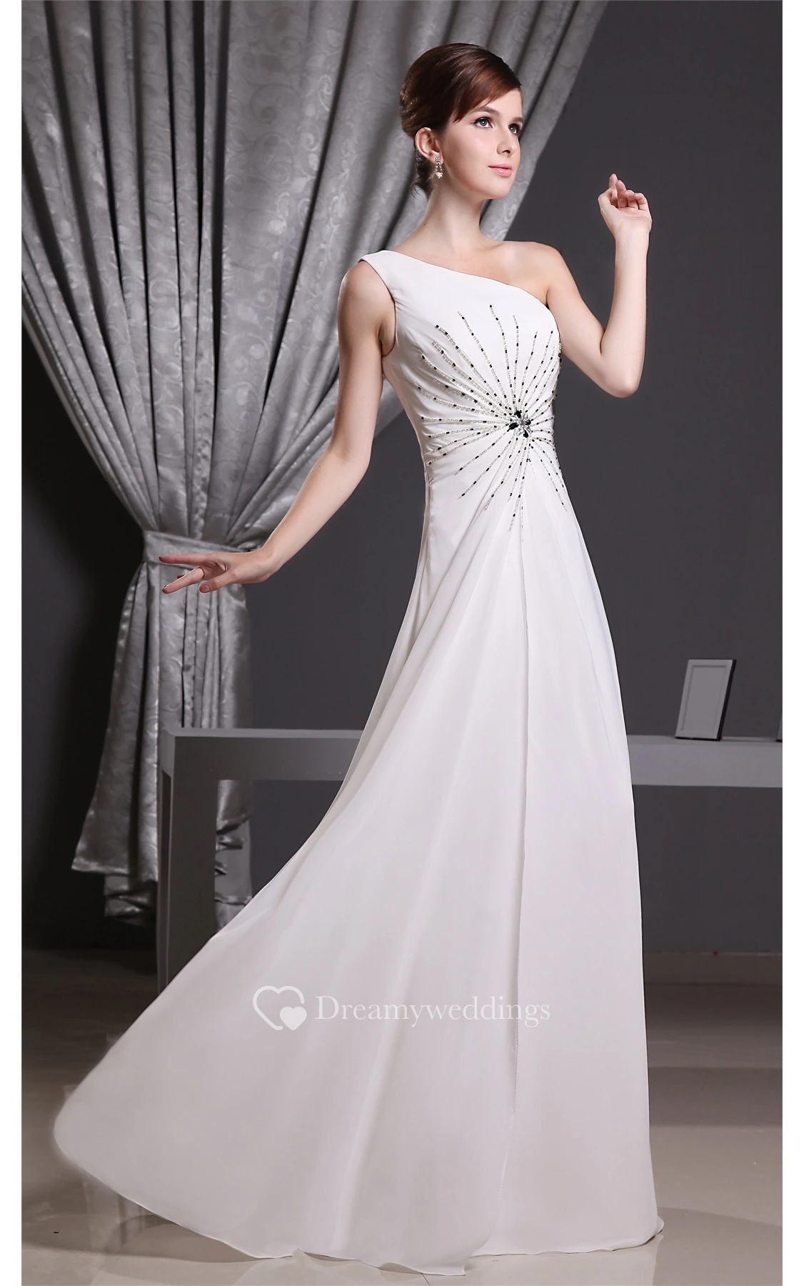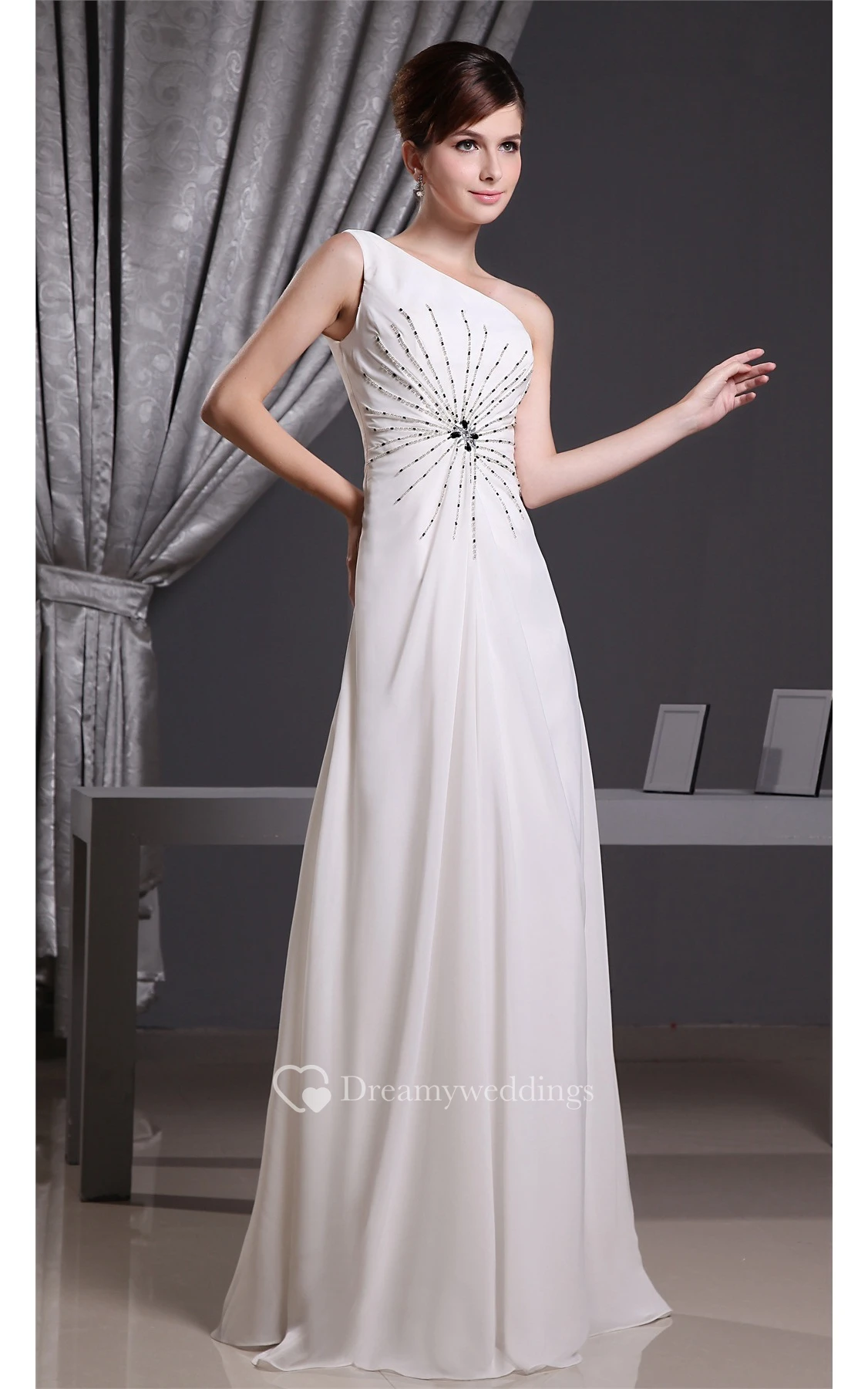 One Shoulder Floor Length A-Line Gown With Crystal Detailings