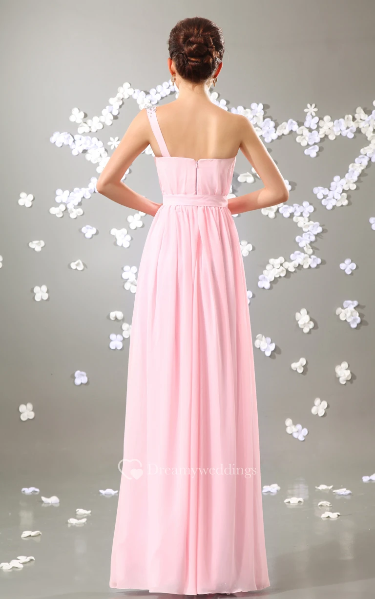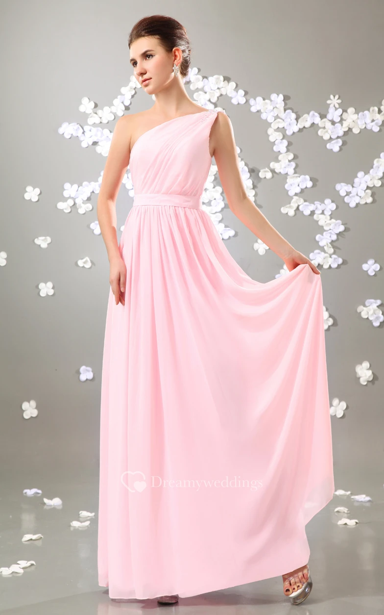 One-Shoulder Floor-Length Chiffon Dress With Pleating