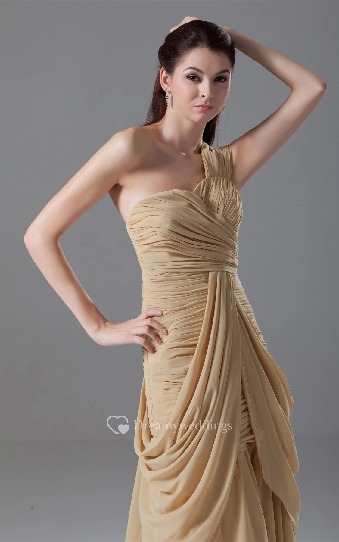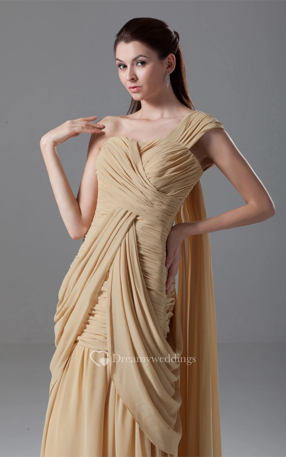 One-Shoulder Floor-Length Criss-Cross Gown With Draping