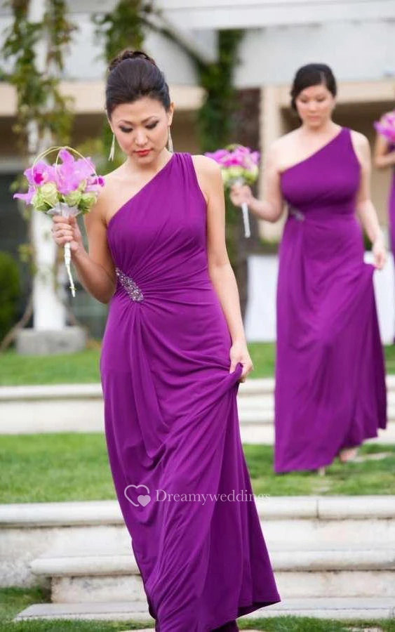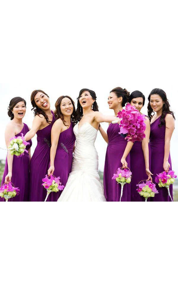 One-shoulder Floor-length Long Side Beaded Chiffon Dress
