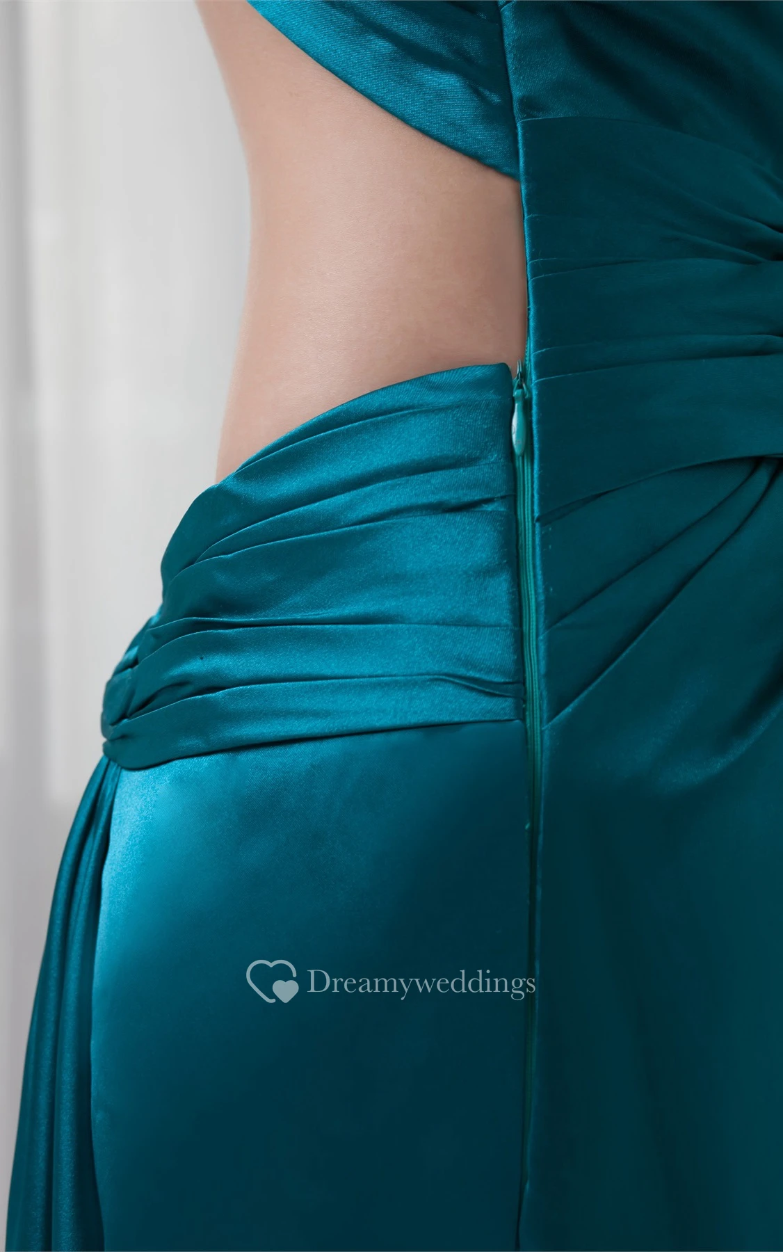 One-Shoulder Floor-Length Satin Epaulet and Dress With Keyhole