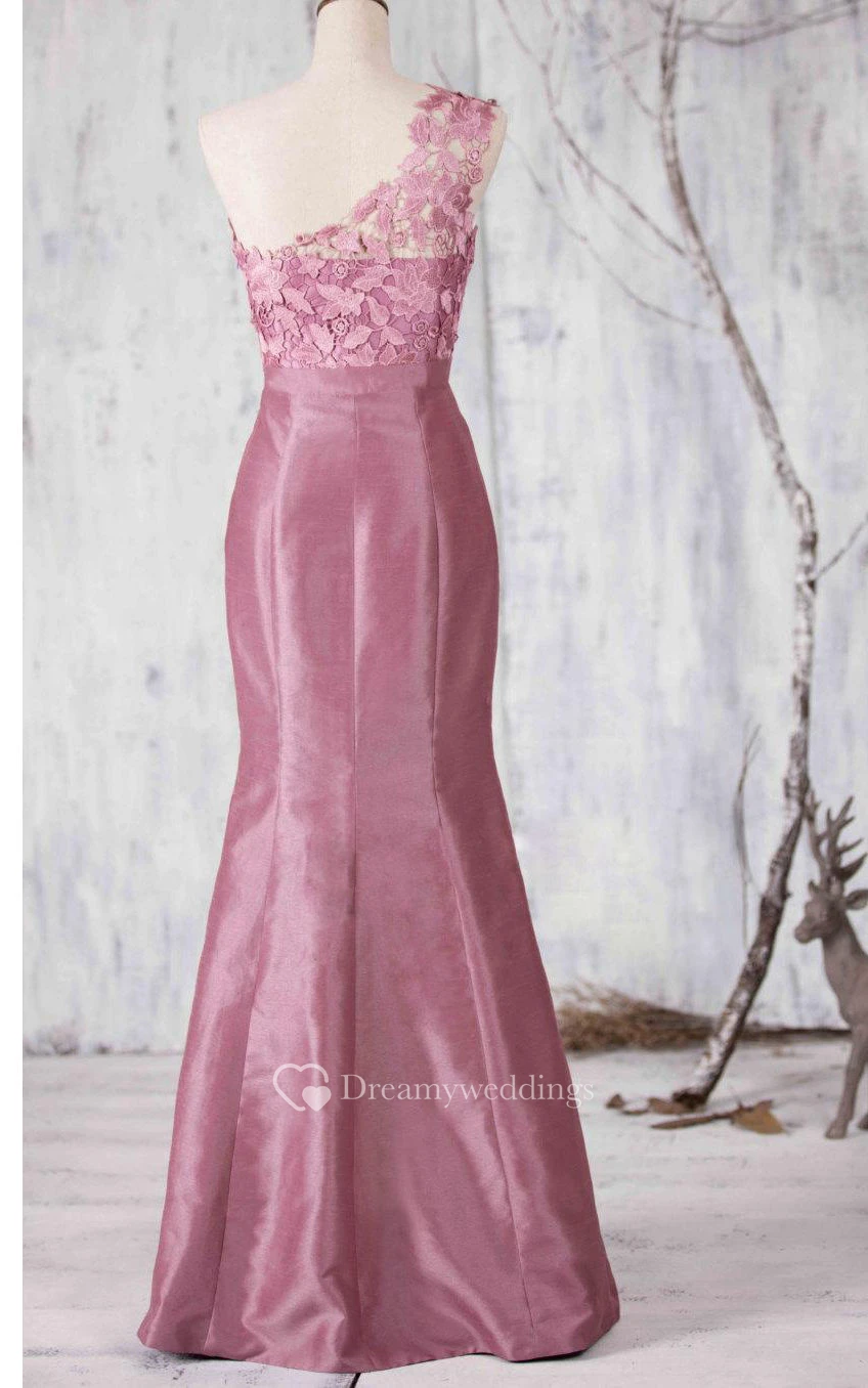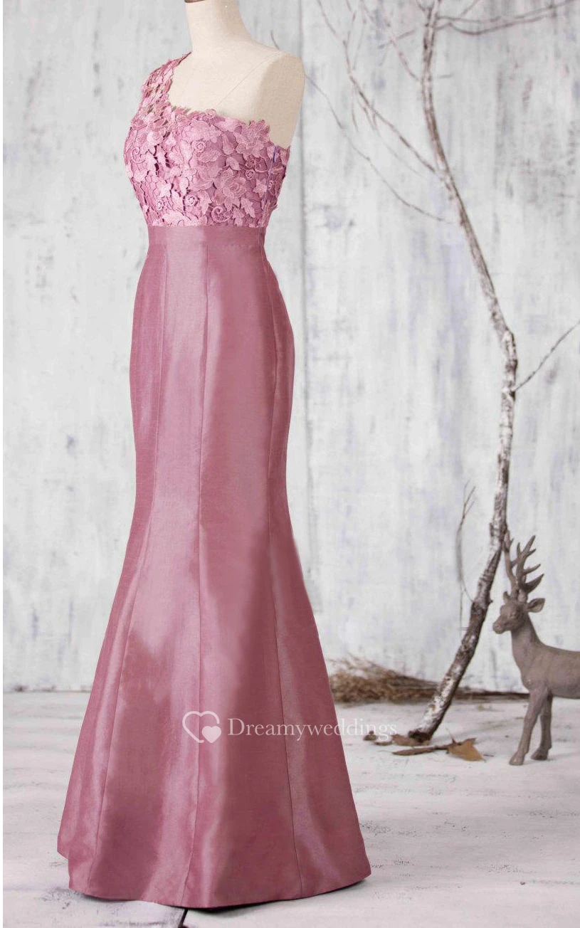 One Shoulder Floral Bodice Mermaid Taffeta Long Dress