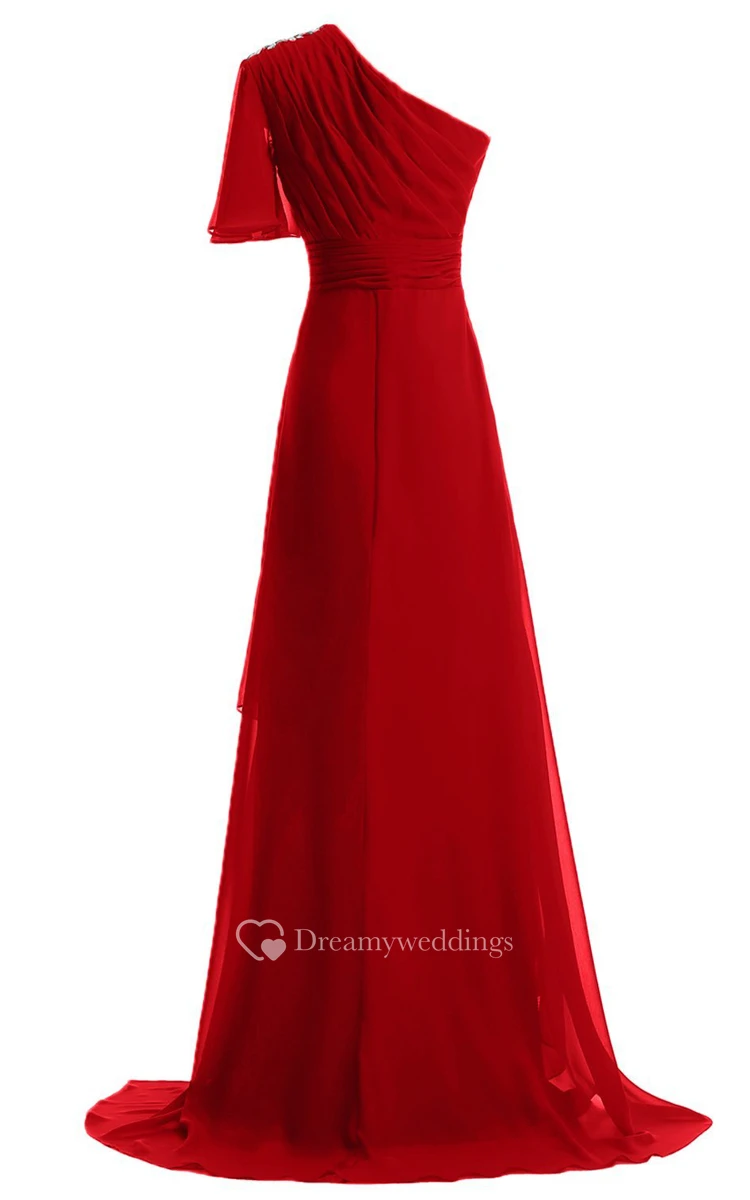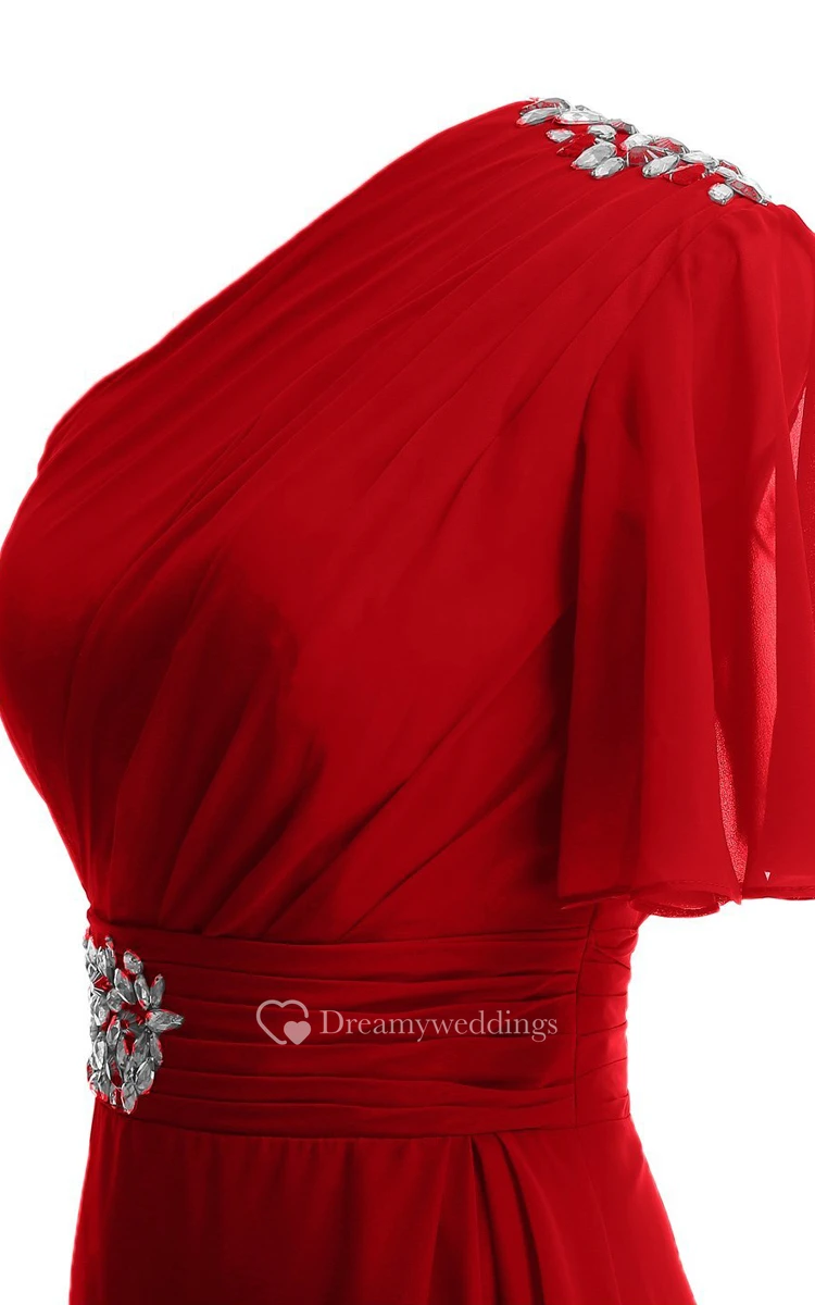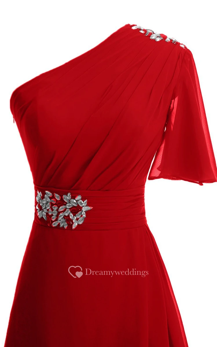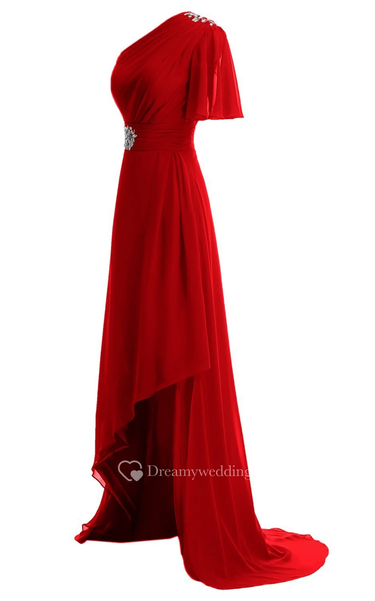 One-shoulder High-low Dress With Beading and Drapping