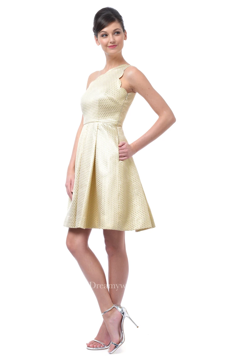One-Shoulder Impressive Dress With Scalloped Edged Strap