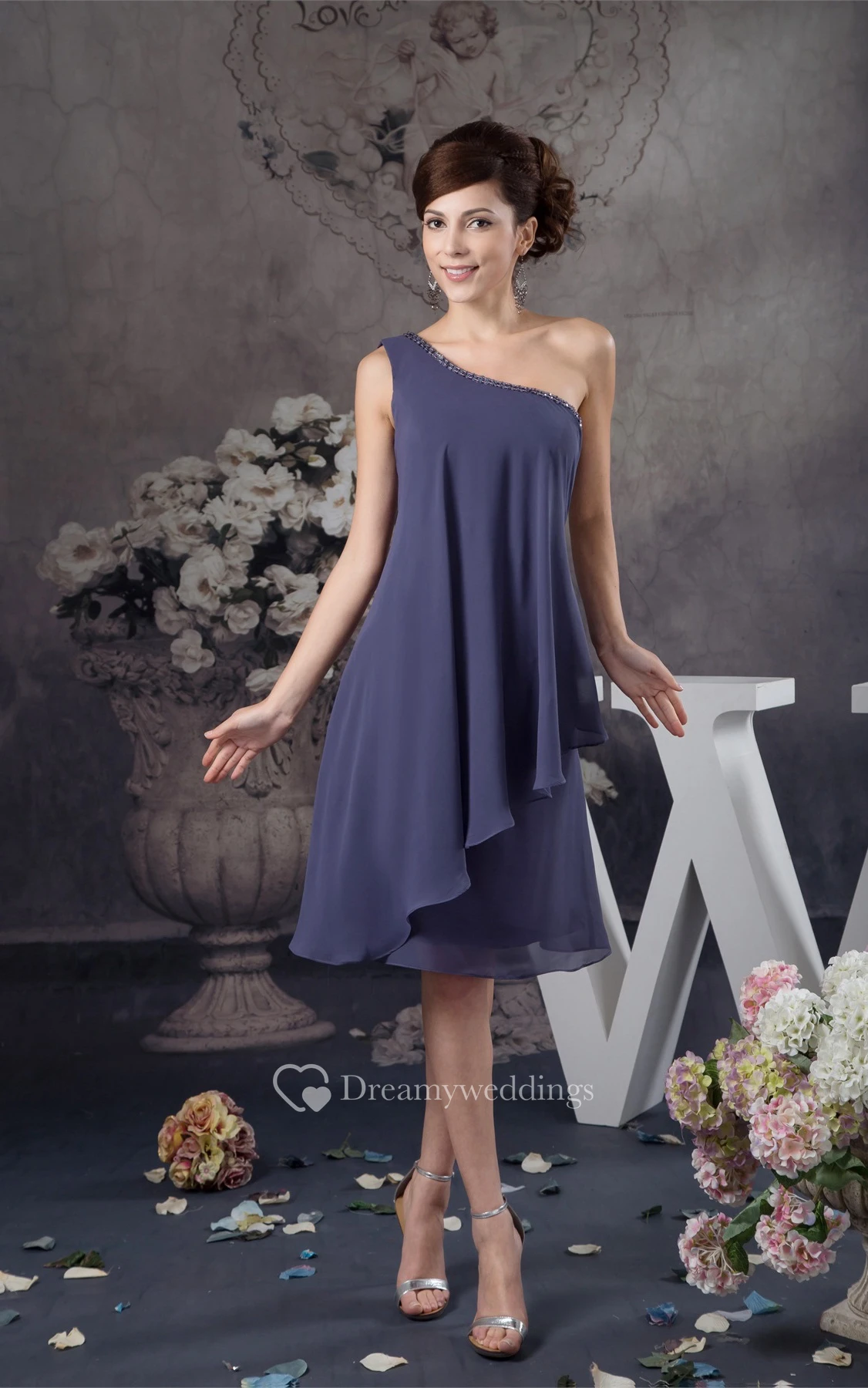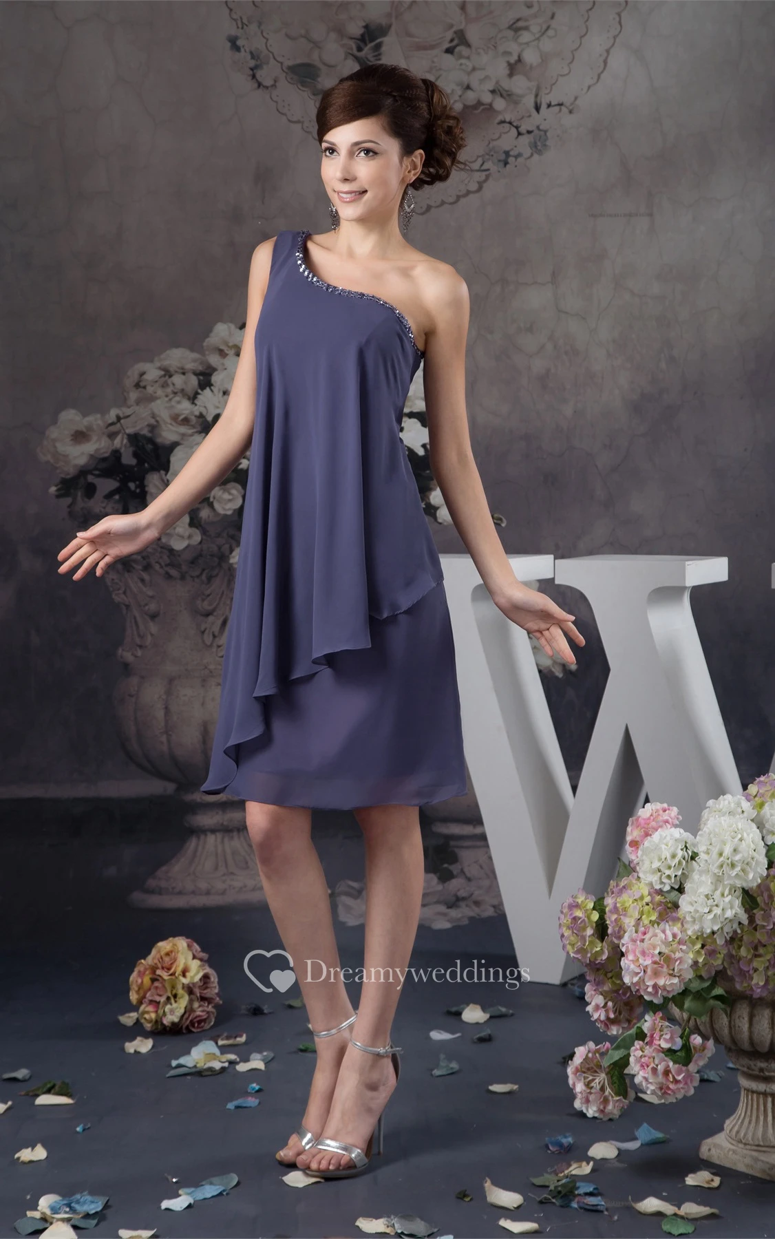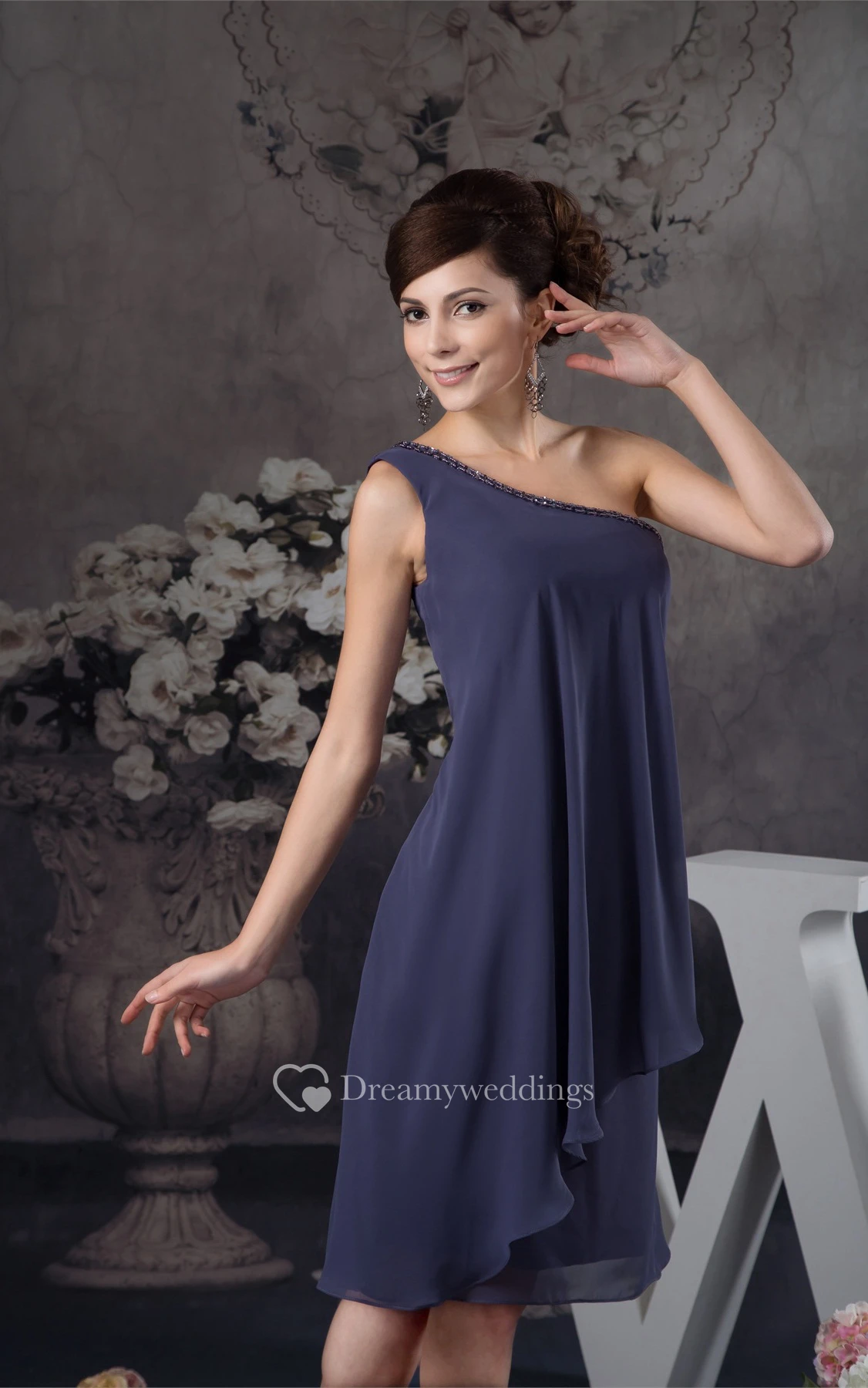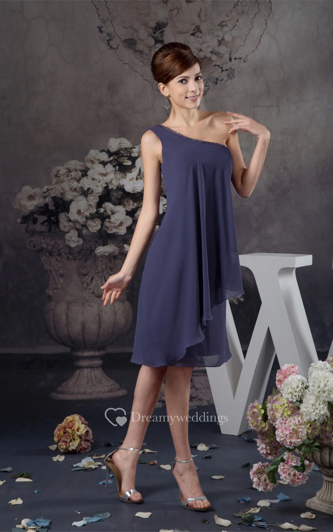 One-Shoulder Knee-Length Chiffon Draping and Dress With Beading