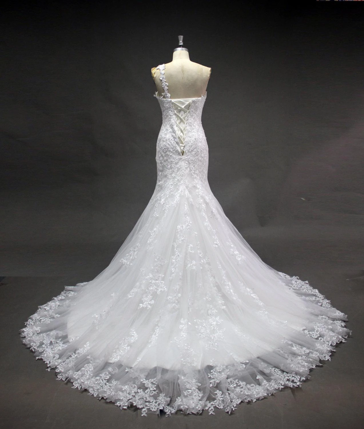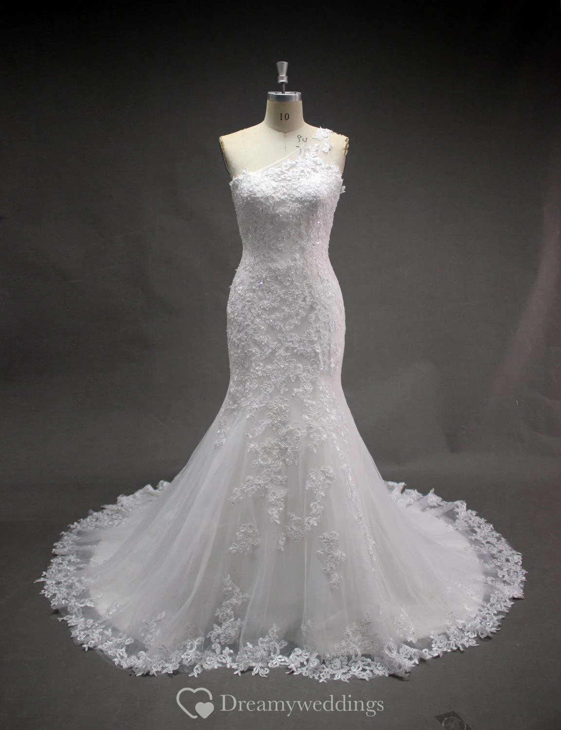 One-Shoulder Lace Mermaid Bridal Dress With Lace-Up Back