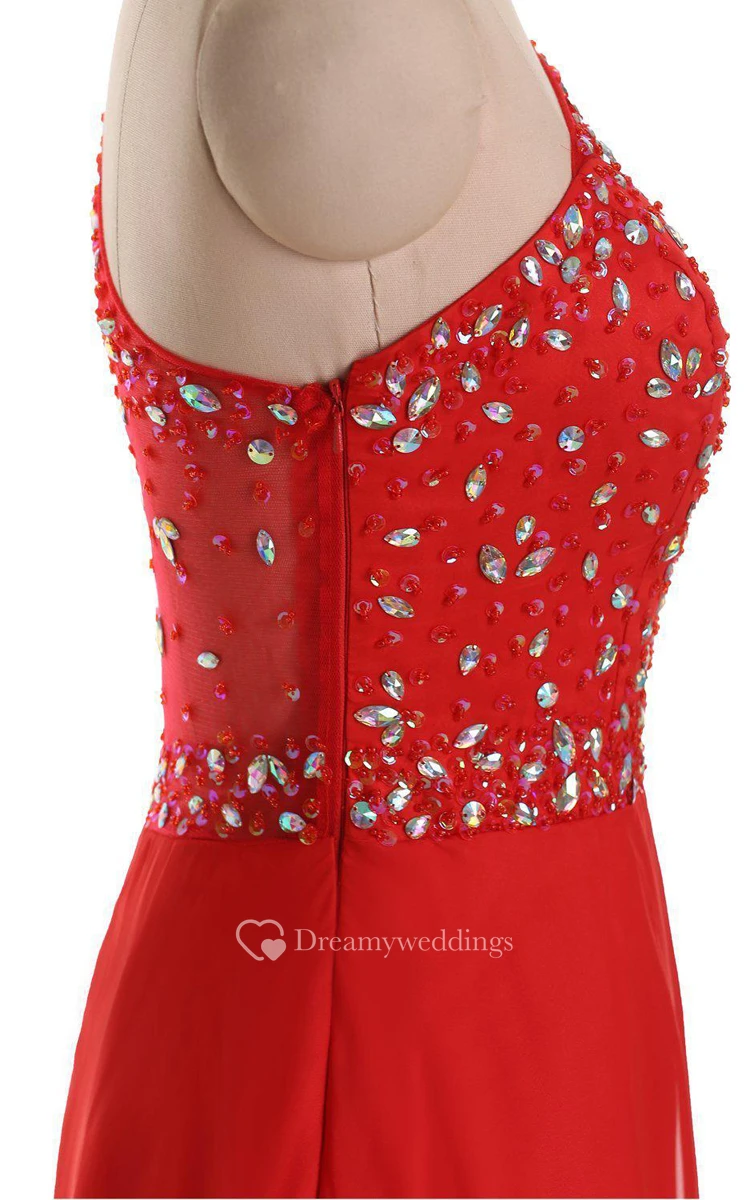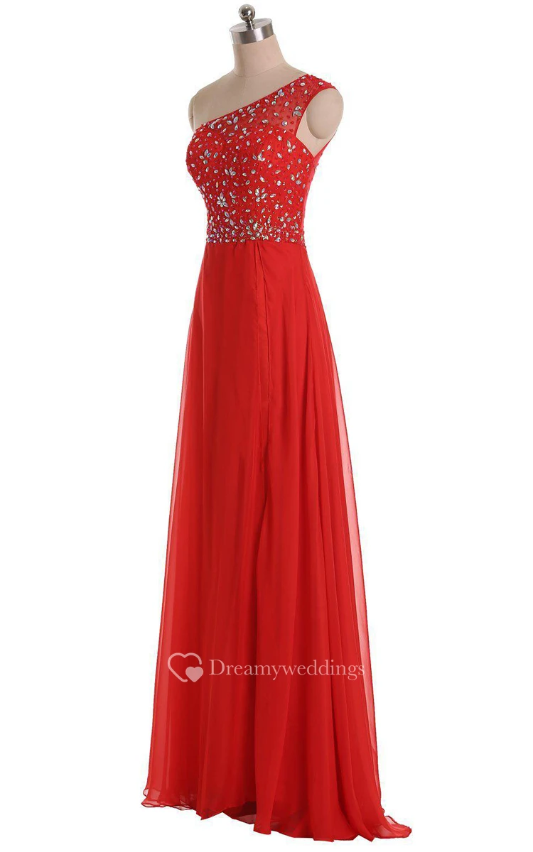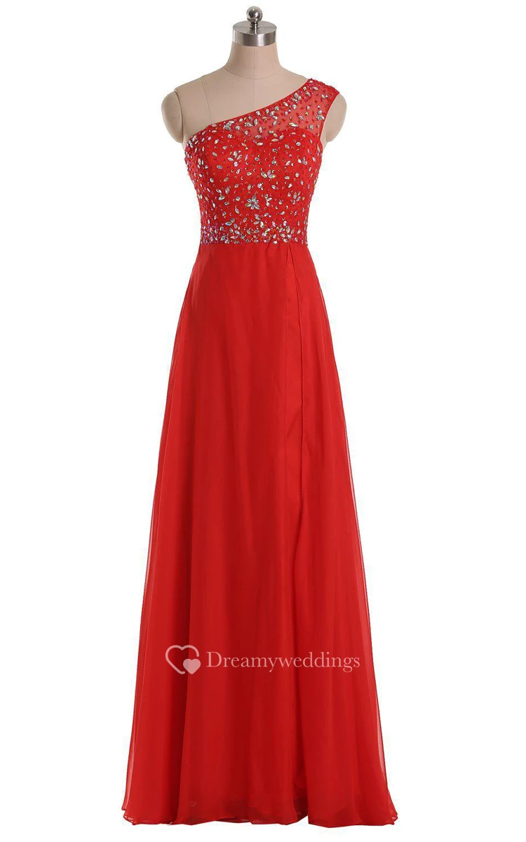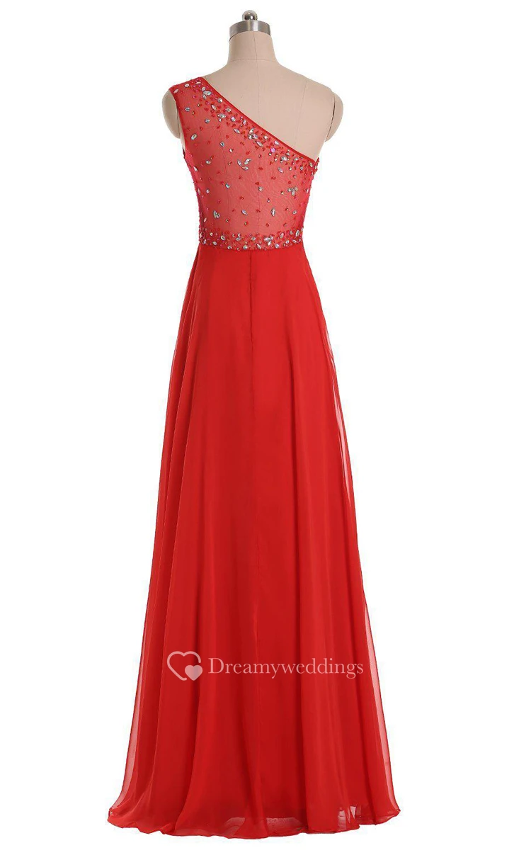 One-shoulder Long A-line Gown With Rhinestone Bodice
