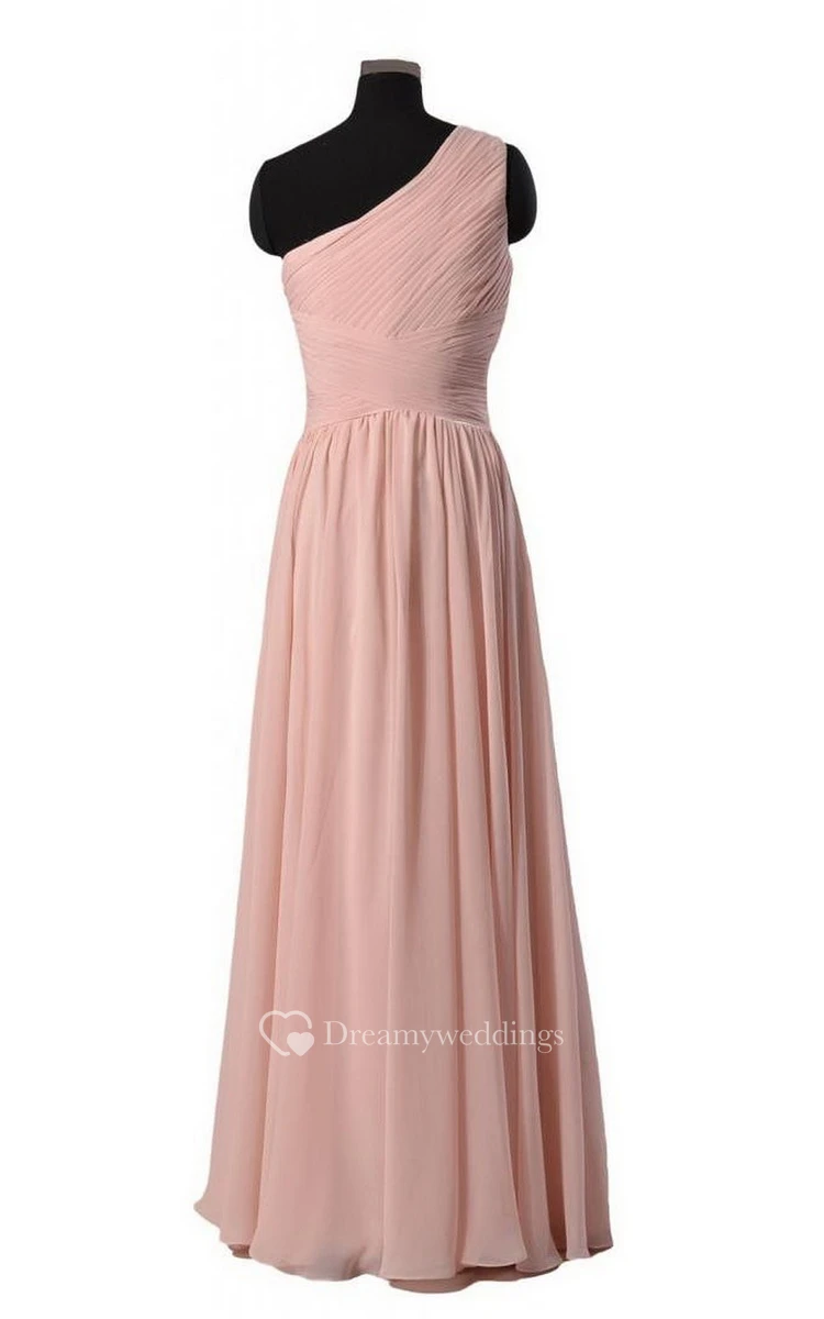 One-shoulder Long Chiffon Dress With Crisscross Ruching