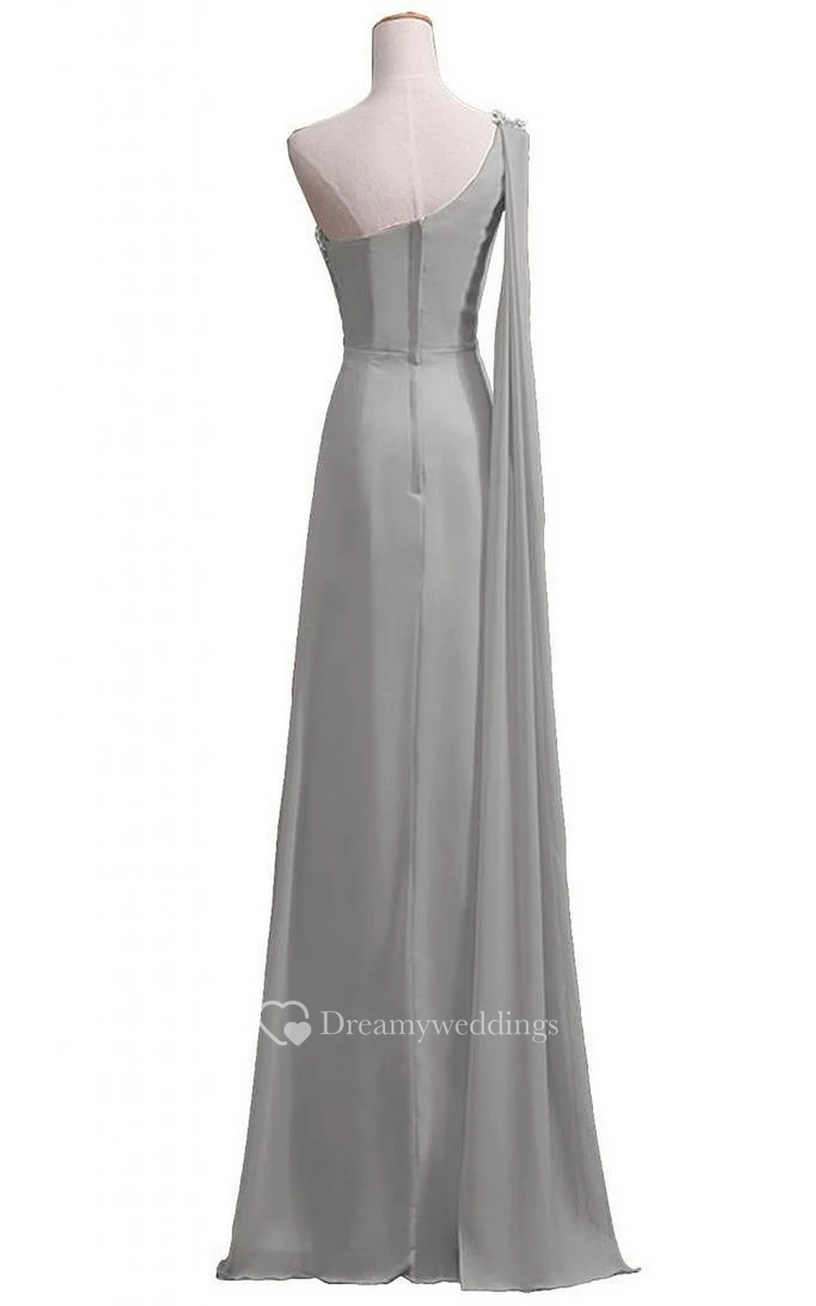 One-shoulder Long Chiffon Gown With Beaded Neckline