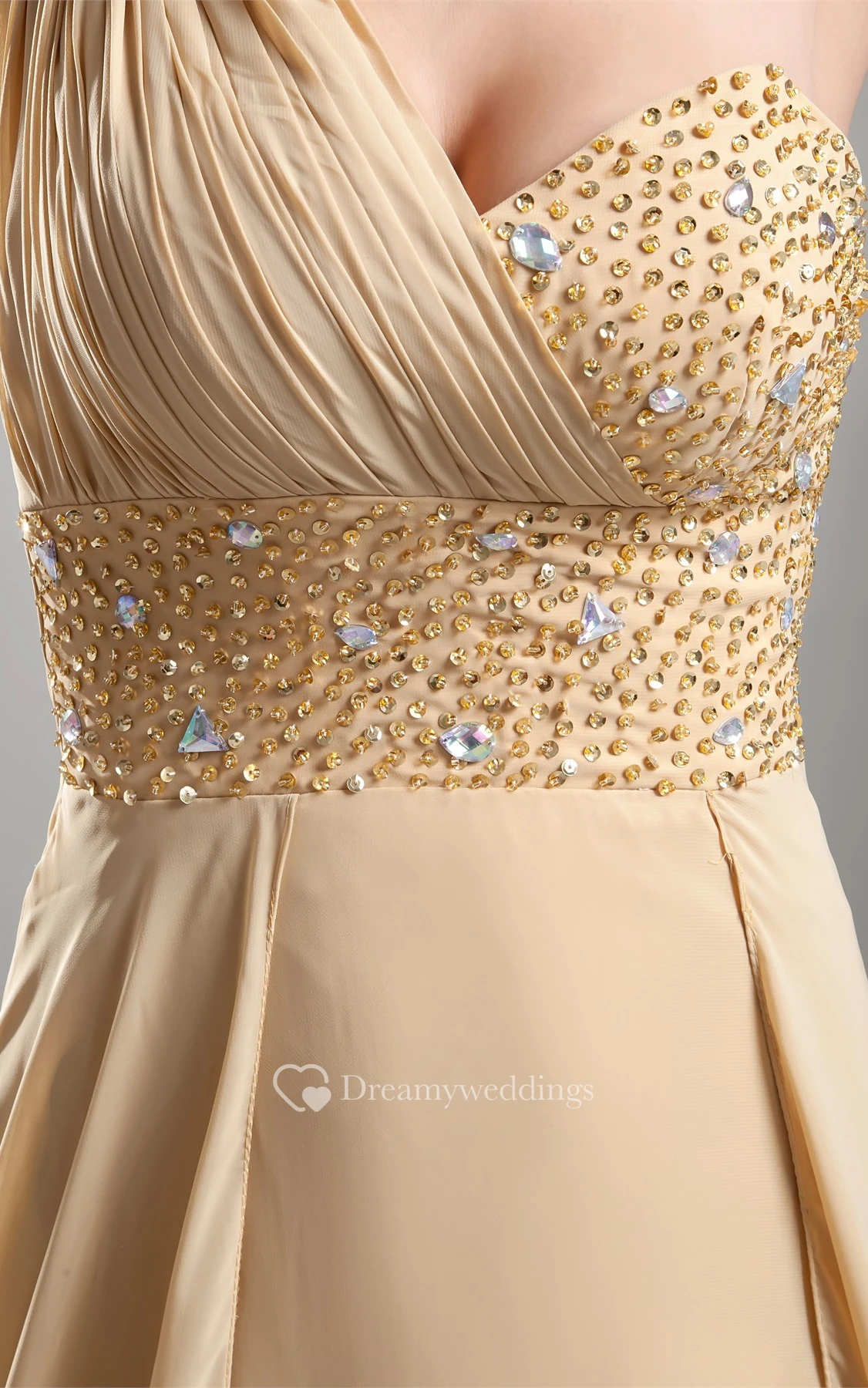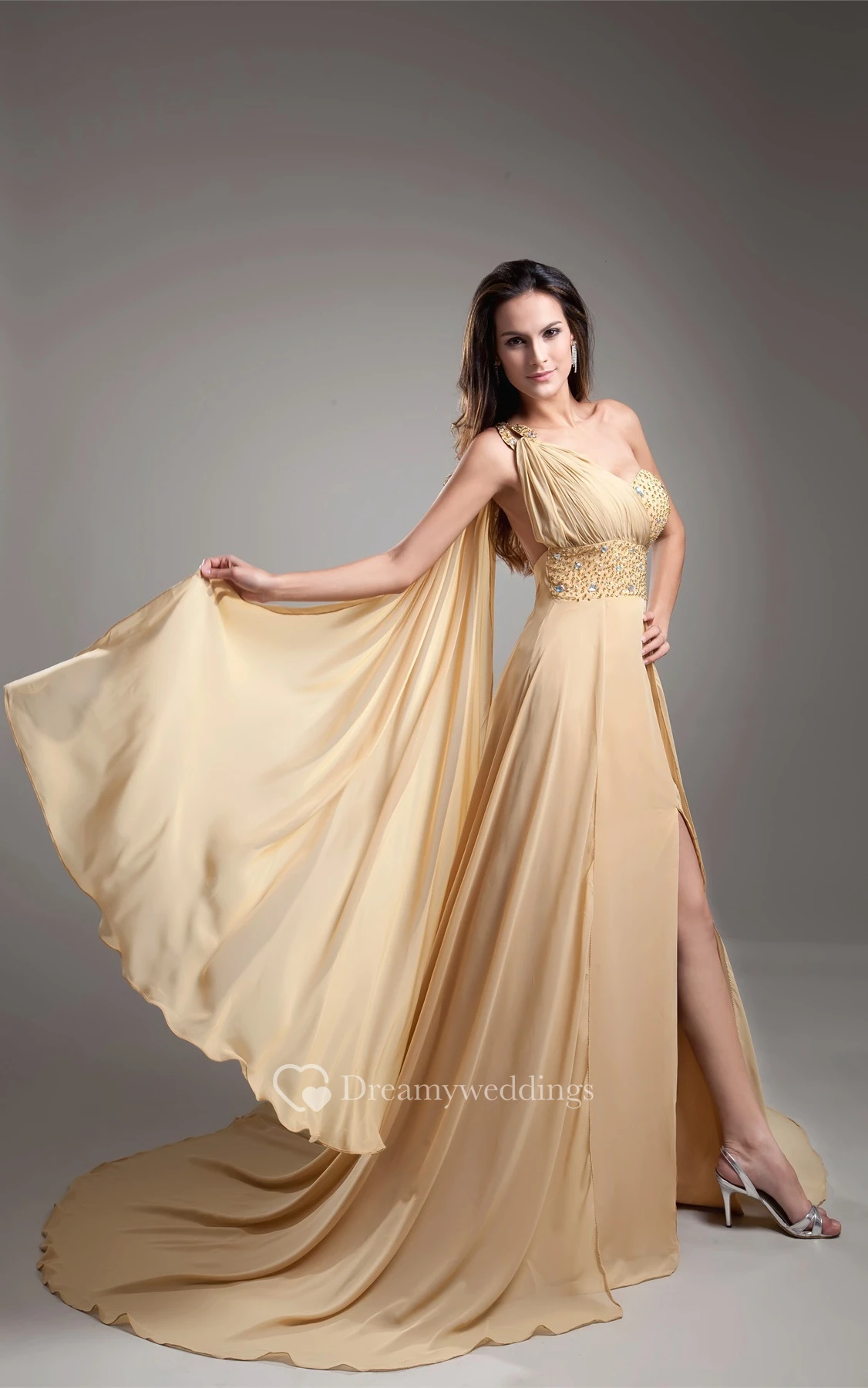 One-Shoulder Long Front-Split Dress With Jeweled Top