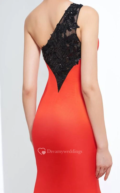 One-Shoulder Mermaid Appliques Sequins Split-Front Prom Dress