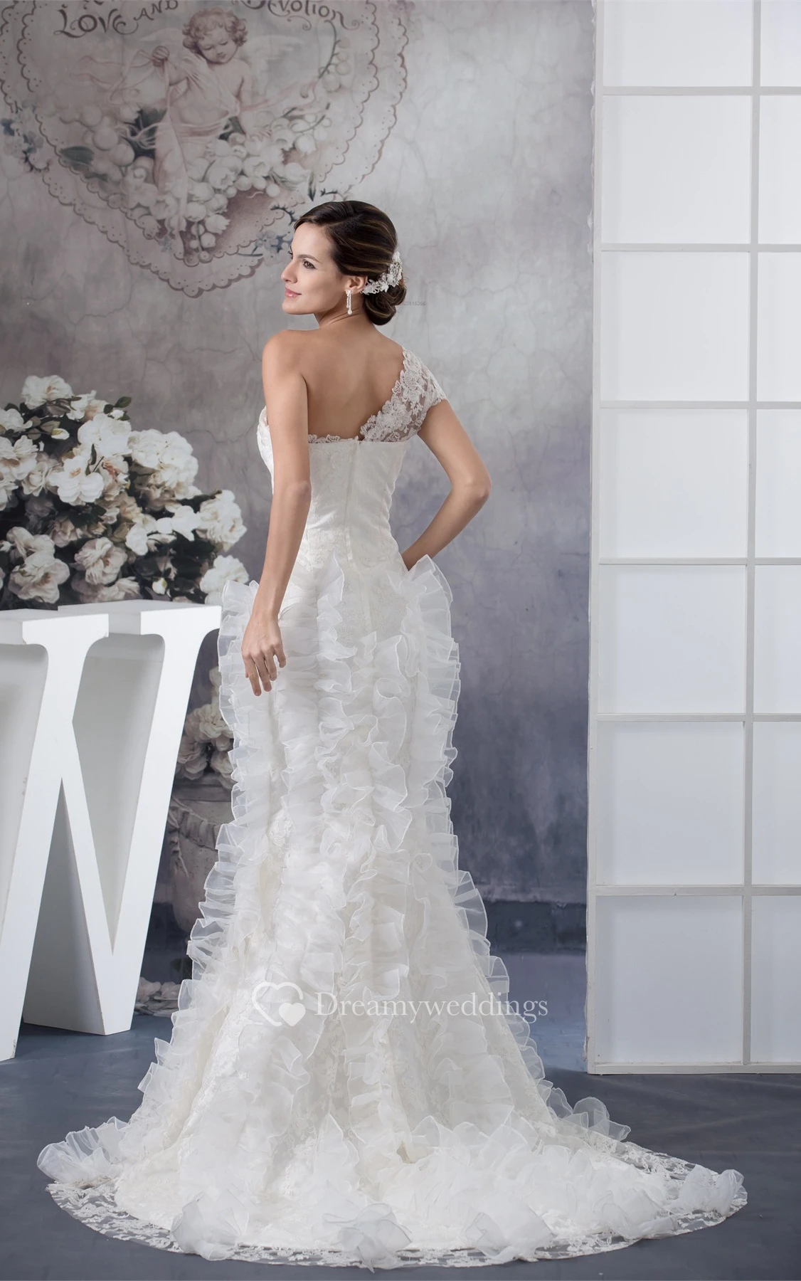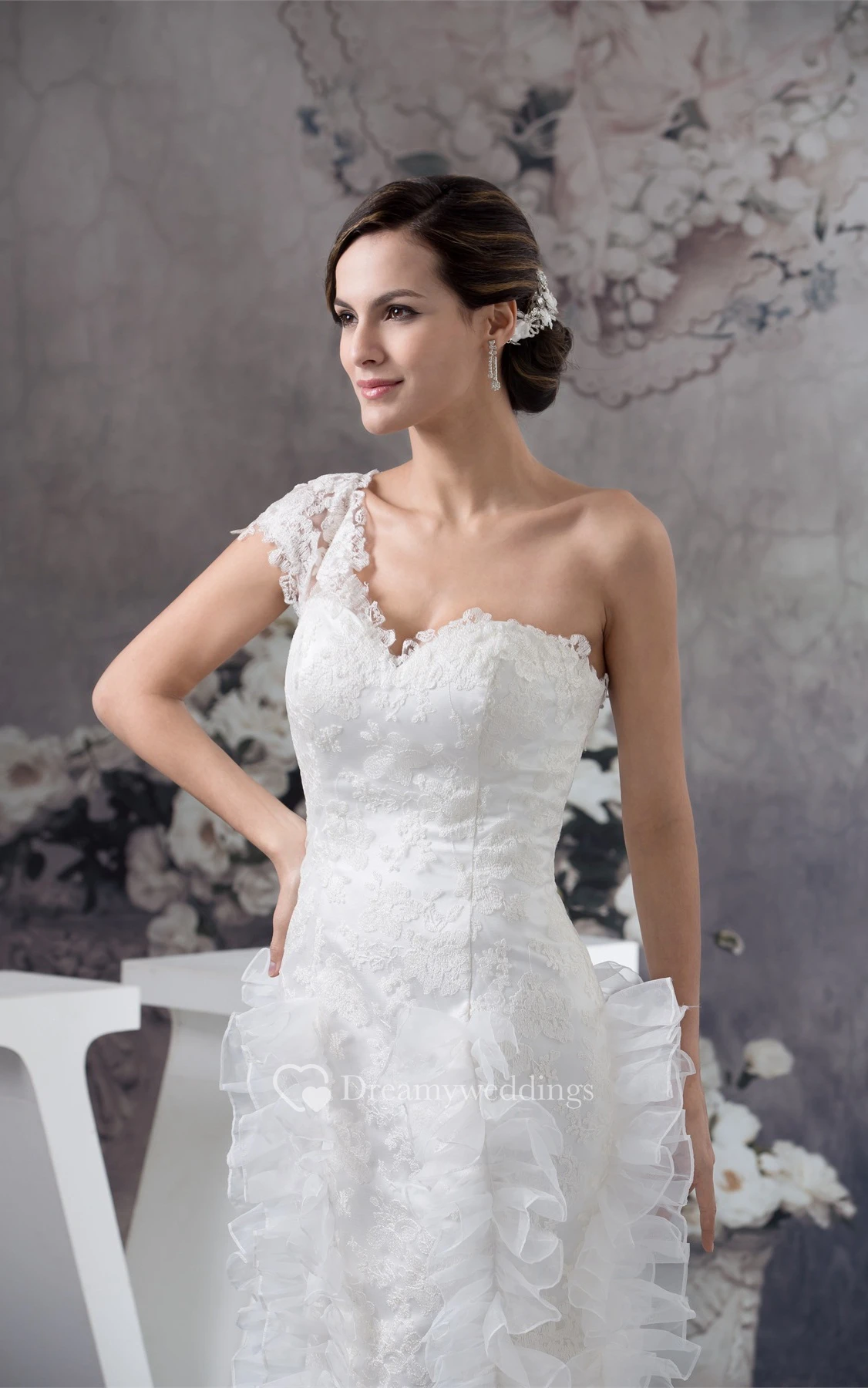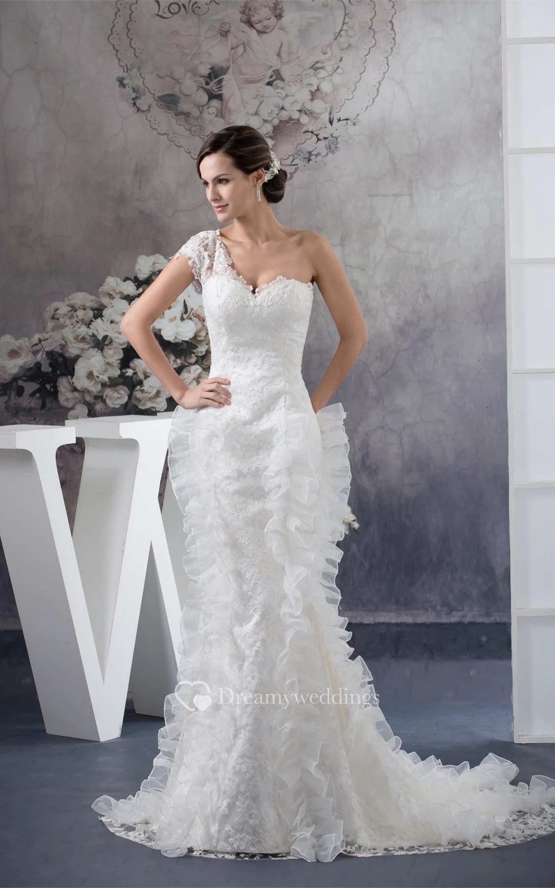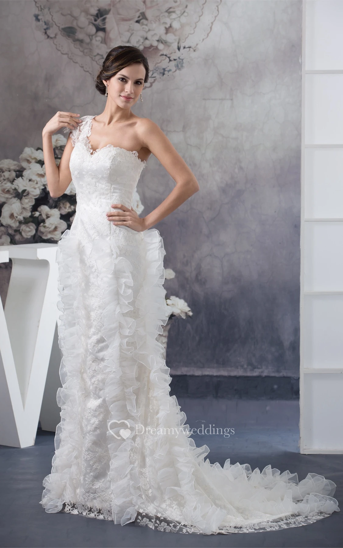 One-Shoulder Mermaid Lace Dress With Ruffled Design