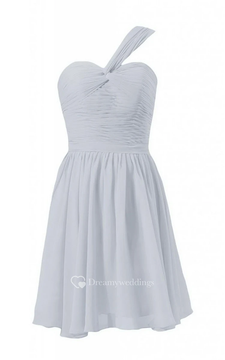 One-shoulder Mini Chiffon Dress With Ruched Bodice