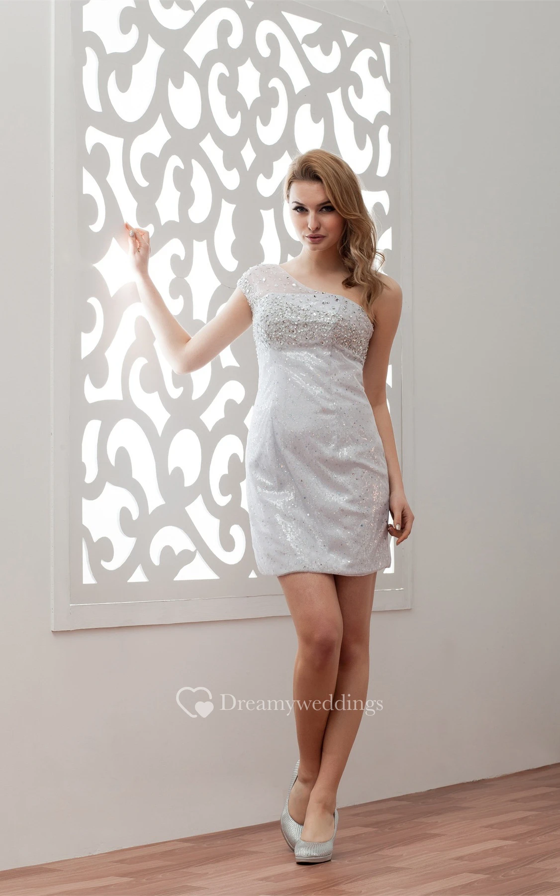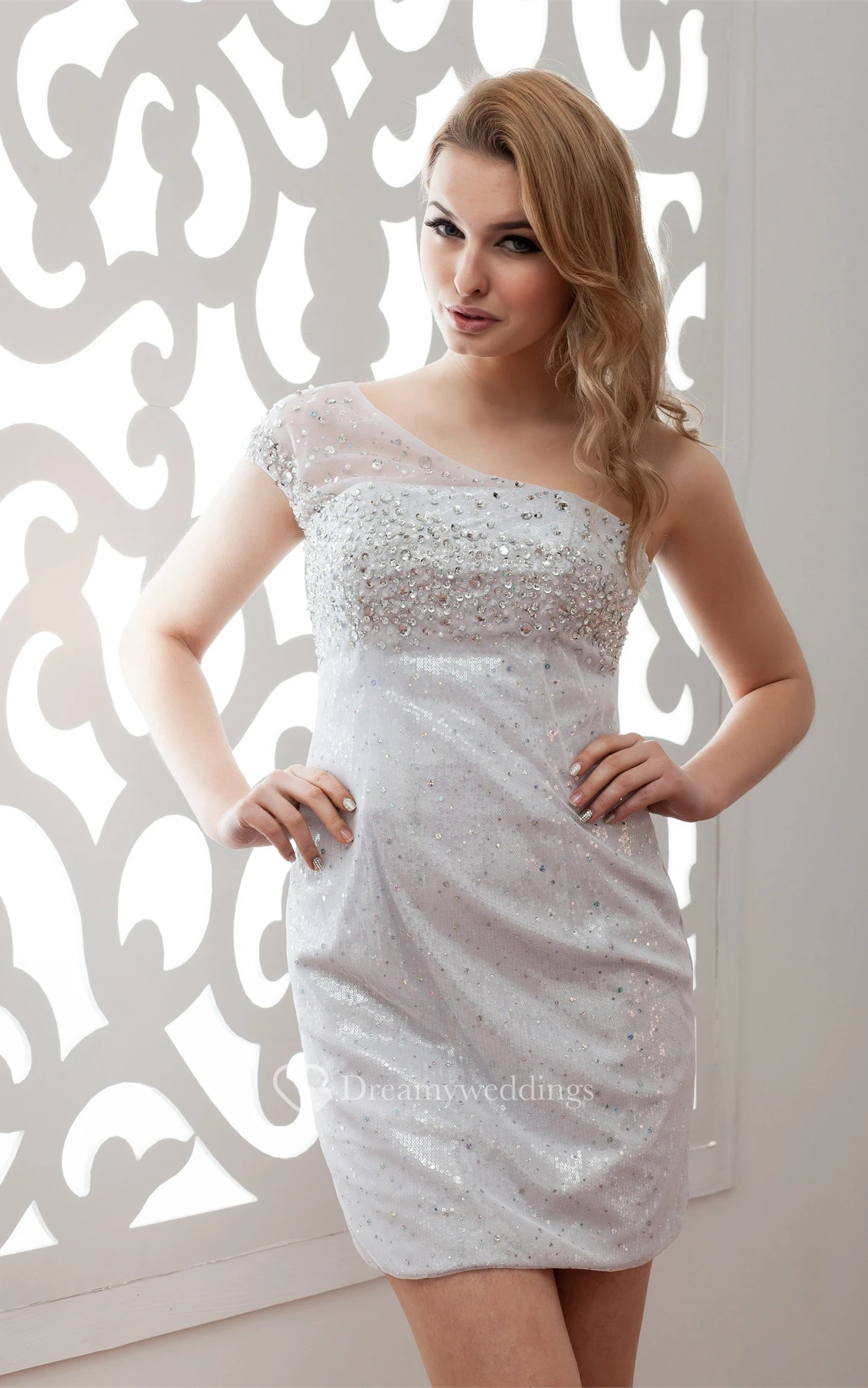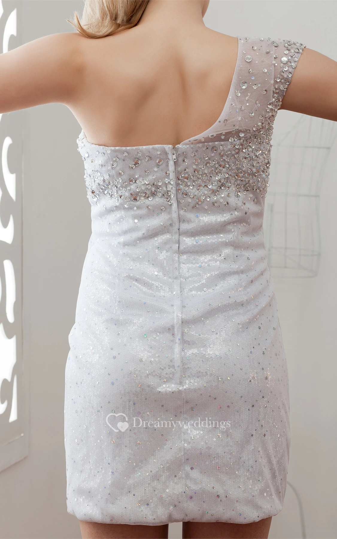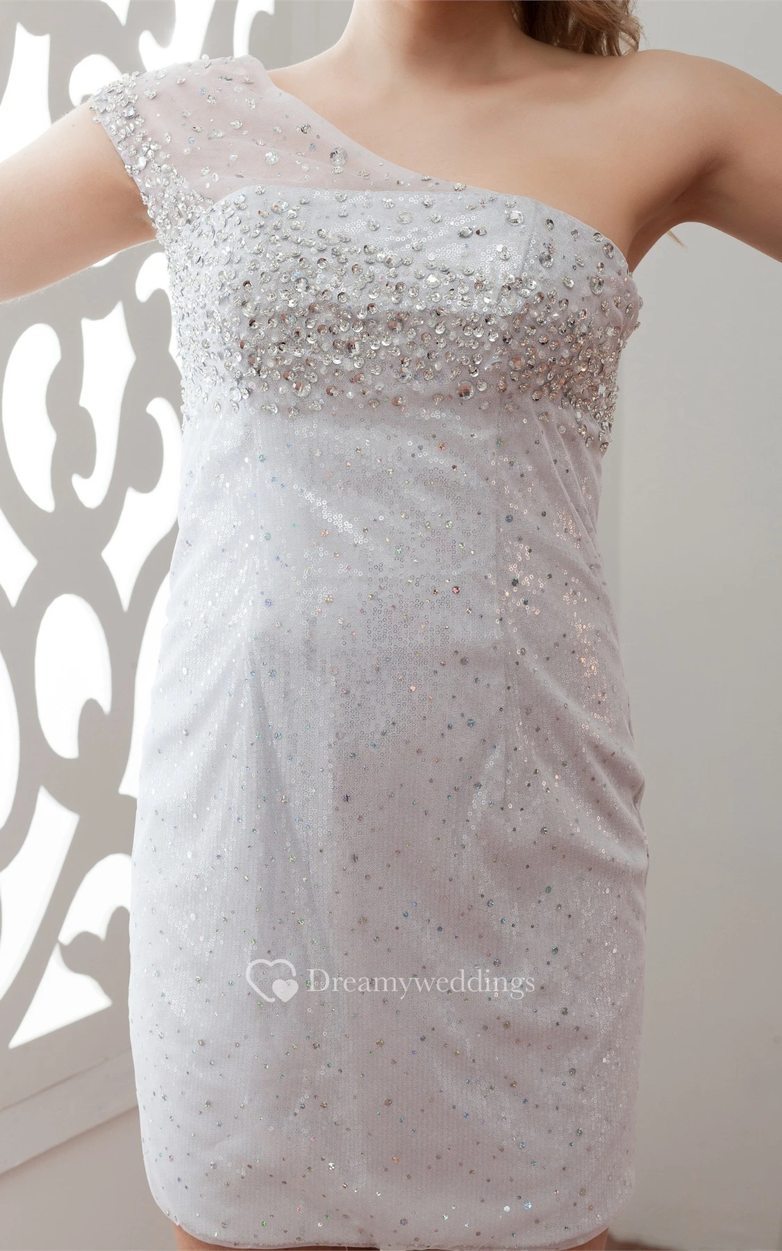 One-Shoulder Pencil Short Illusion Sequins and Dress With Beading