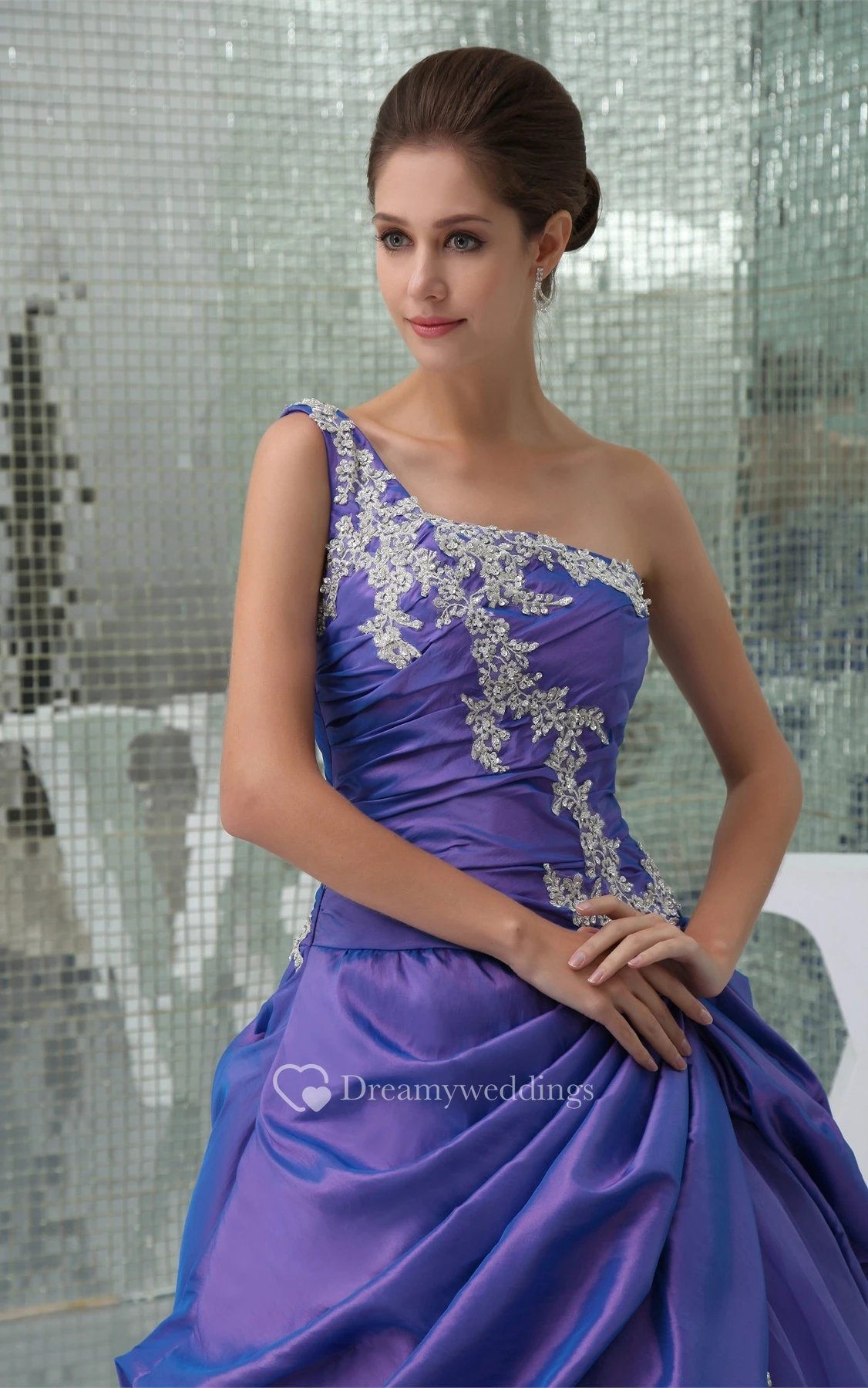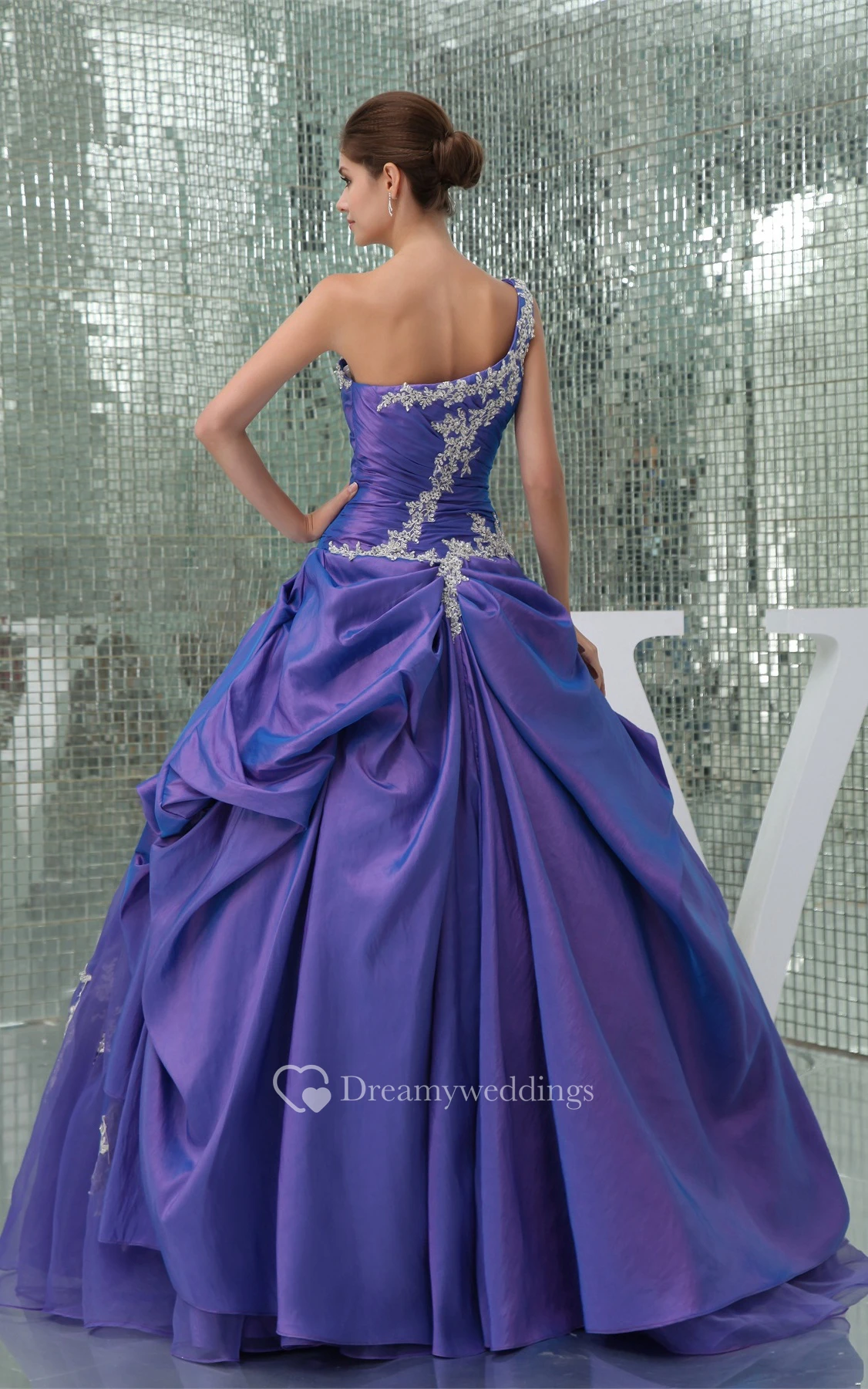 One-Shoulder Pick-Up Ruched Ball-Gown With Appliques