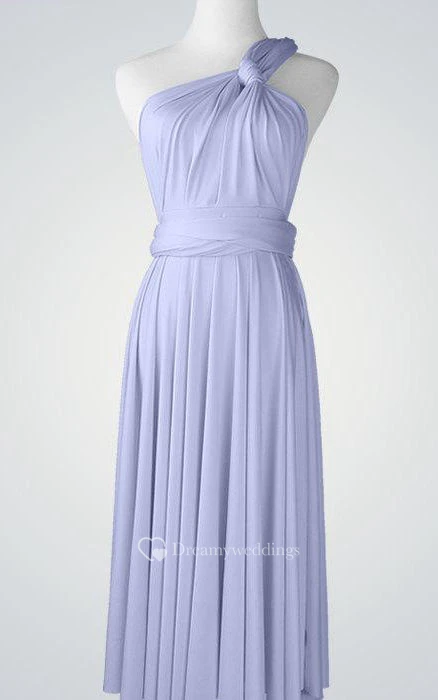 One Shoulder Pleated A-line Jersey Knee Length Dress With Bandage