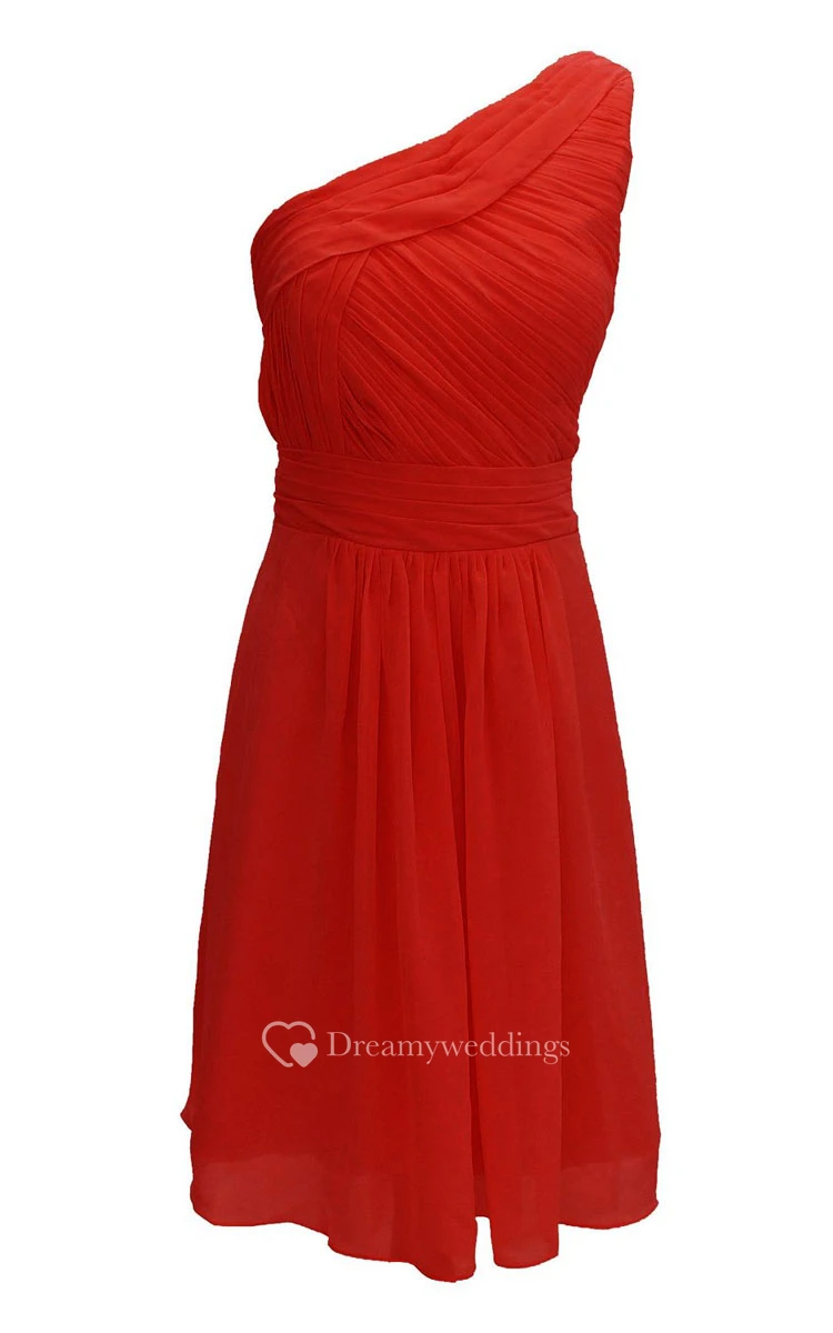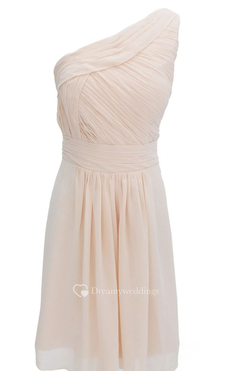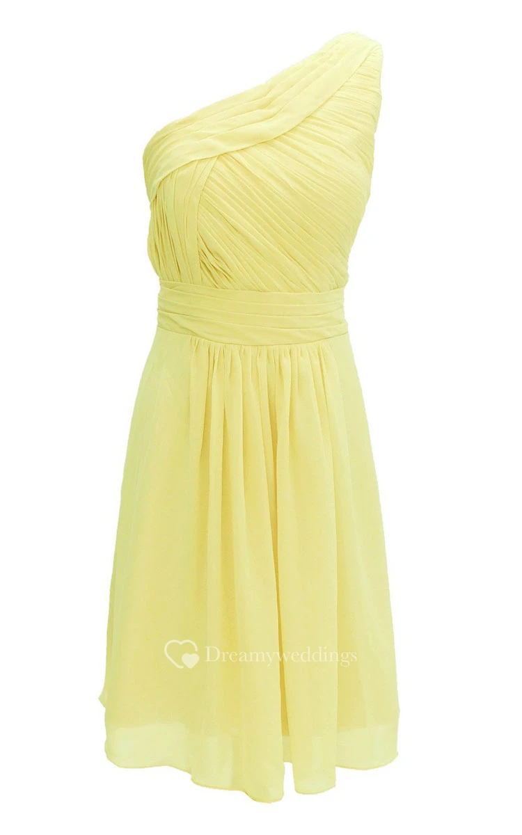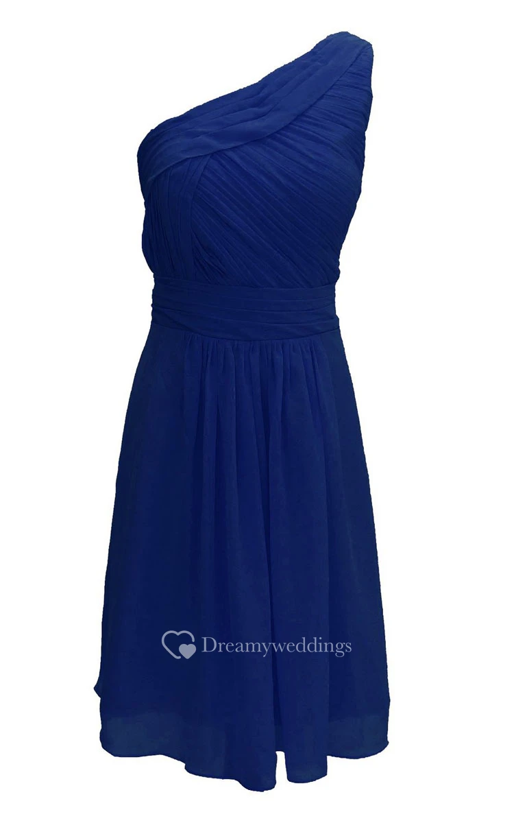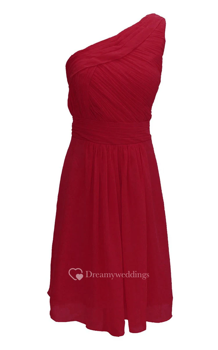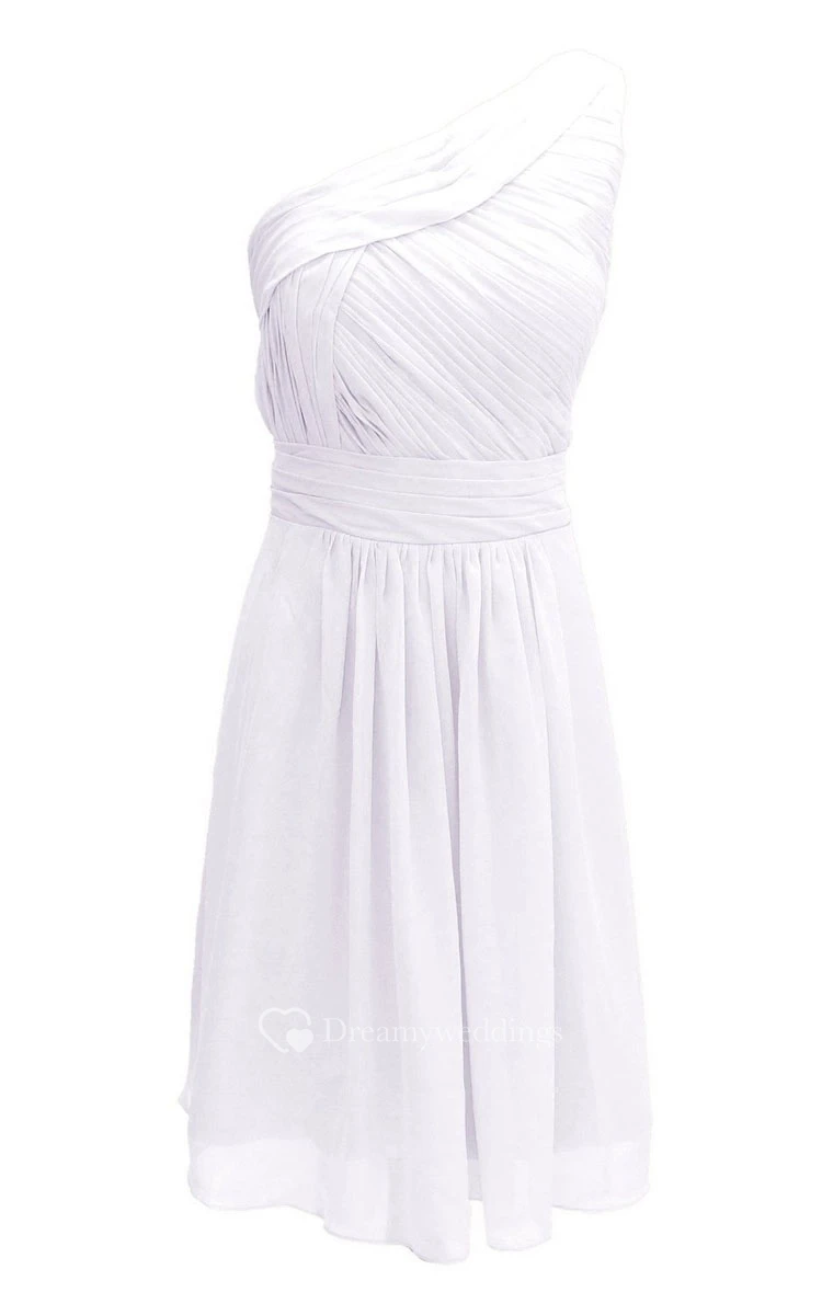 One-shoulder Pleated Chiffon A-line Dress With Ruched Band