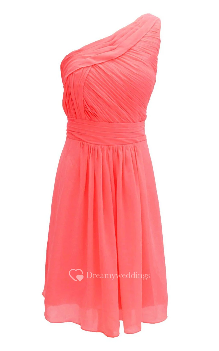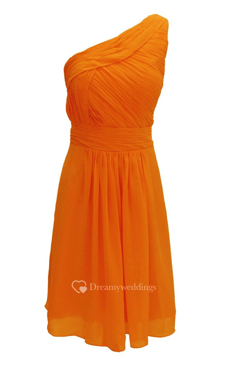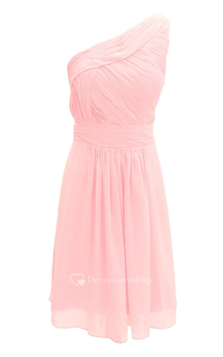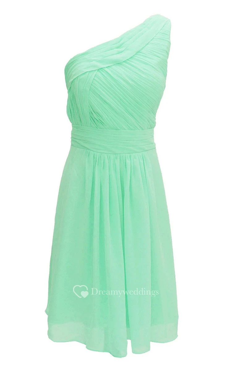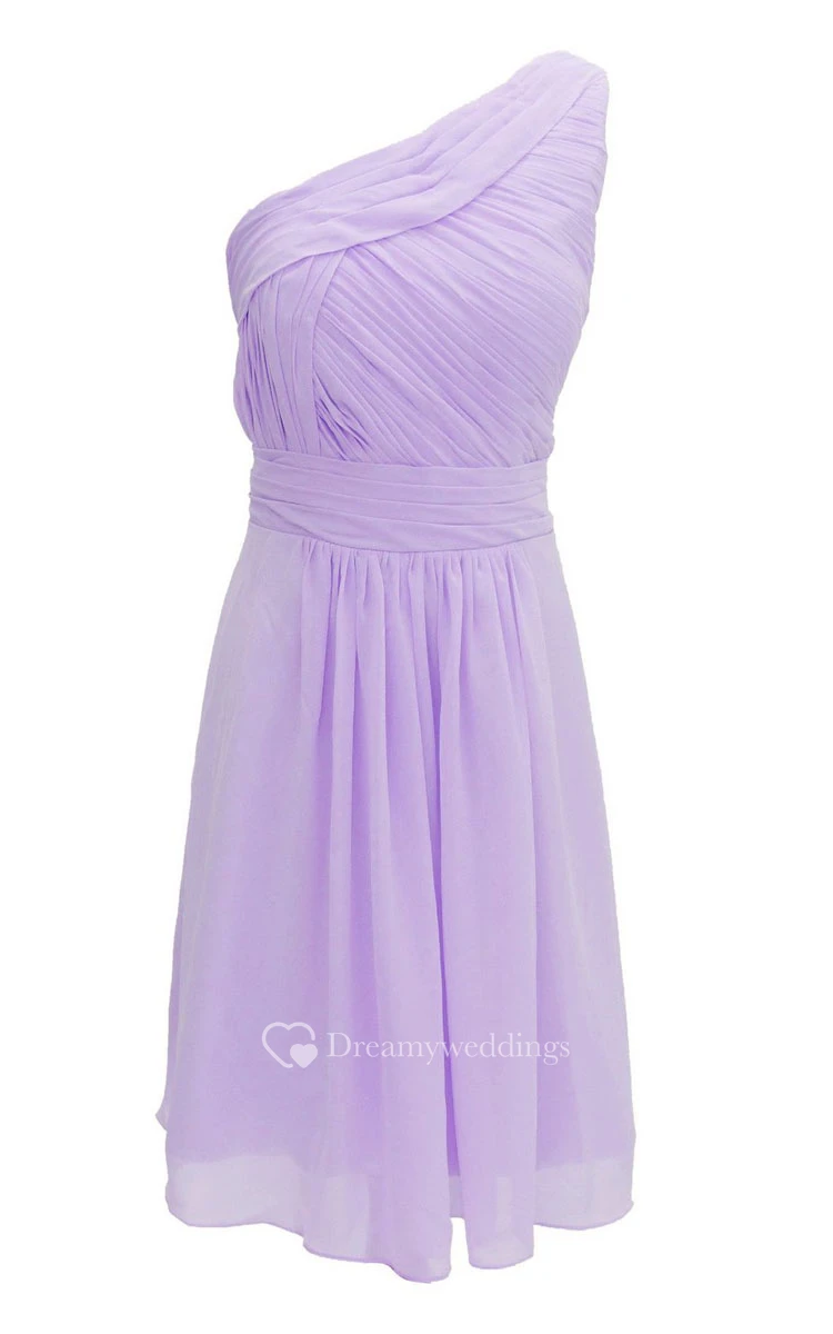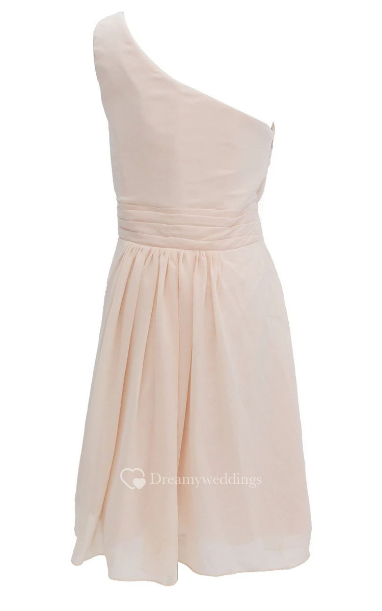 One-shoulder Pleated Chiffon A-line Dress With Ruched Band