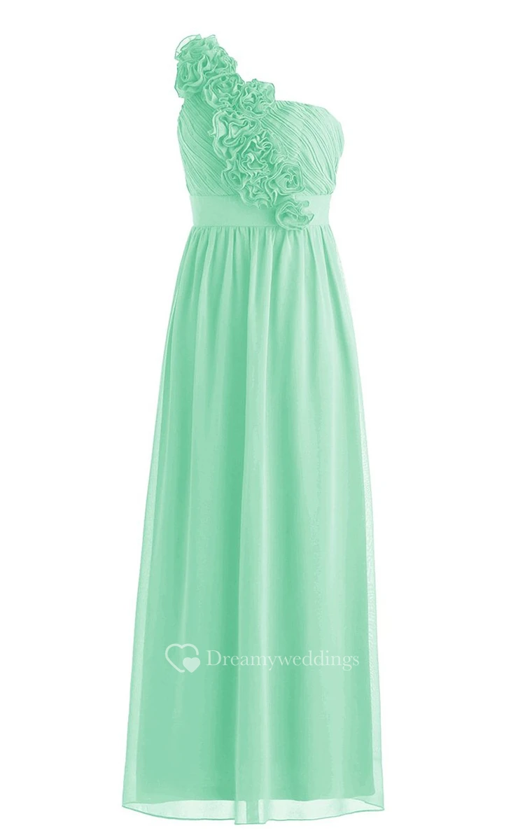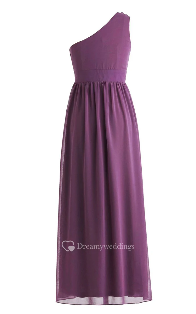 One-shoulder Pleated Chiffon A-line Gown With Flowers