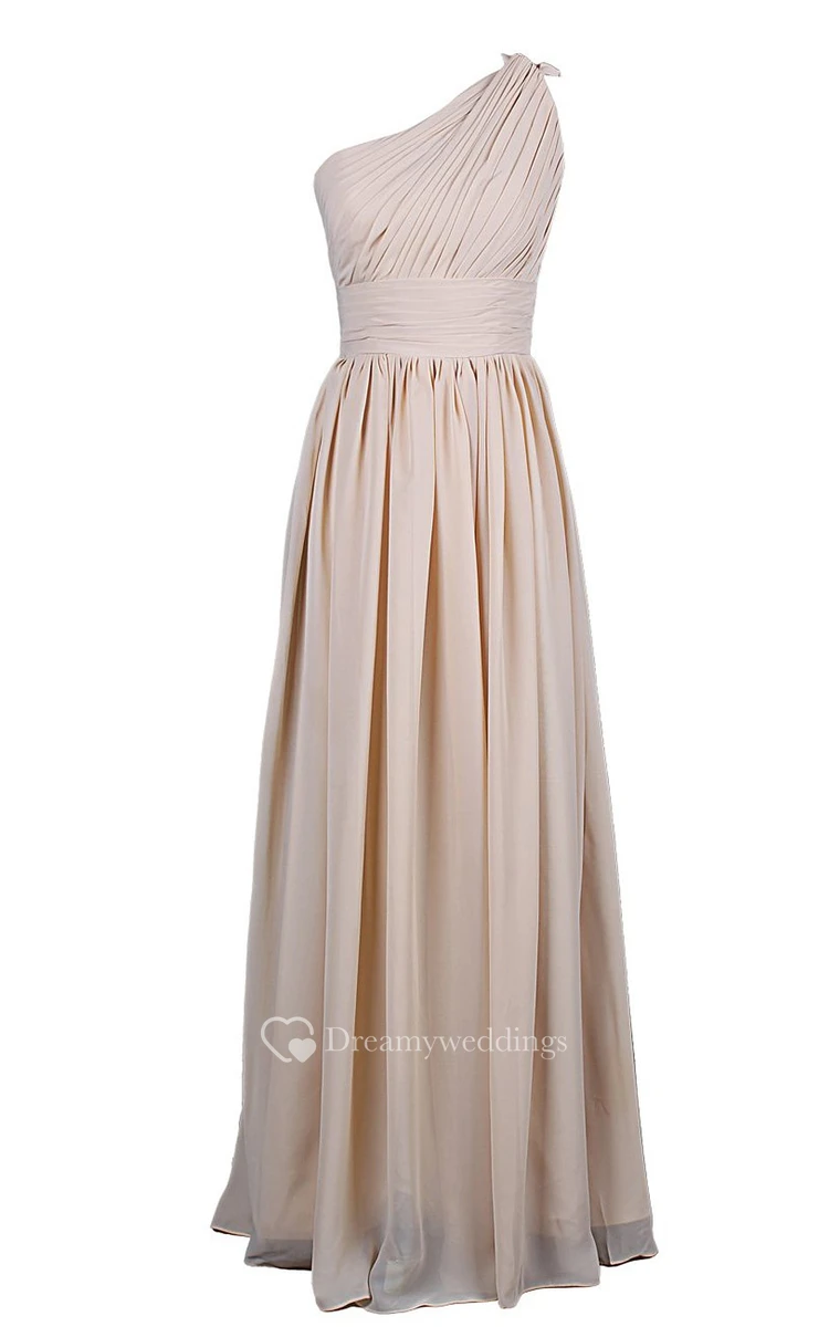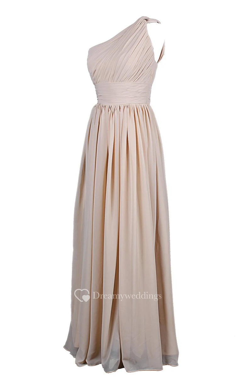One-shoulder Pleated Chiffon A-line Gown With Ruched Band