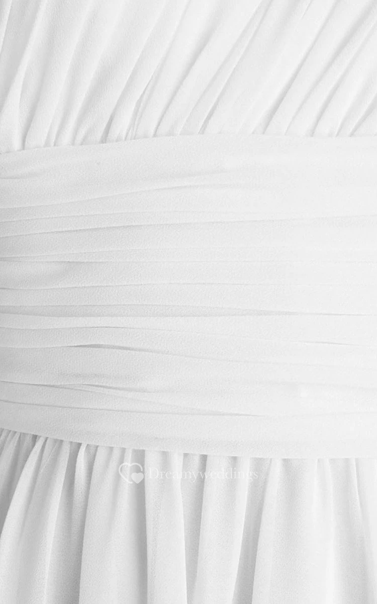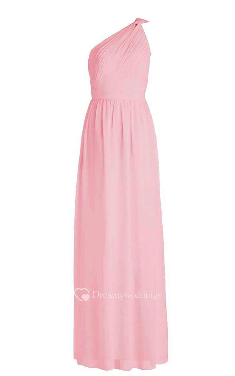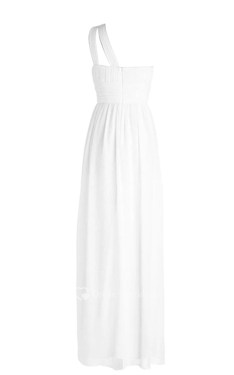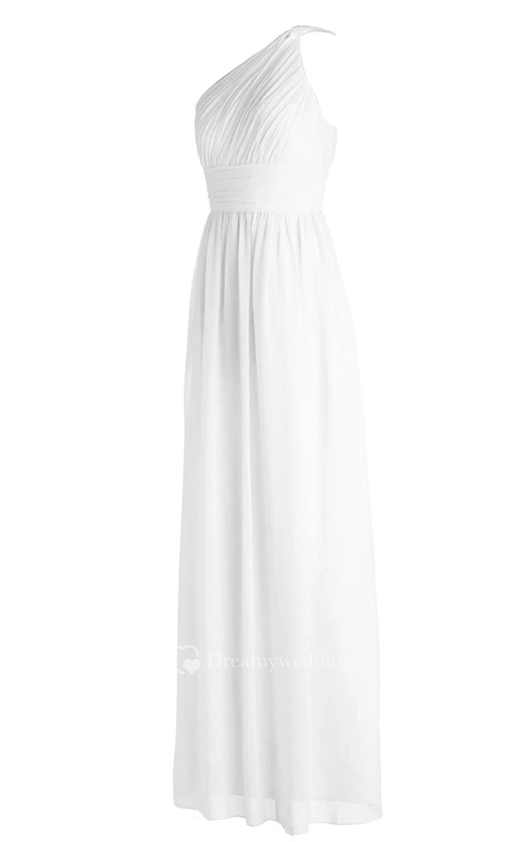 One-shoulder Pleated Chiffon Sheath Gown With Ruched Band