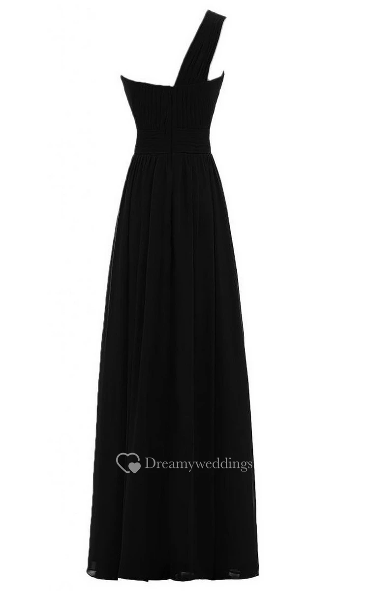 One-shoulder Pleated Long Chiffon Dress With Zipper Back