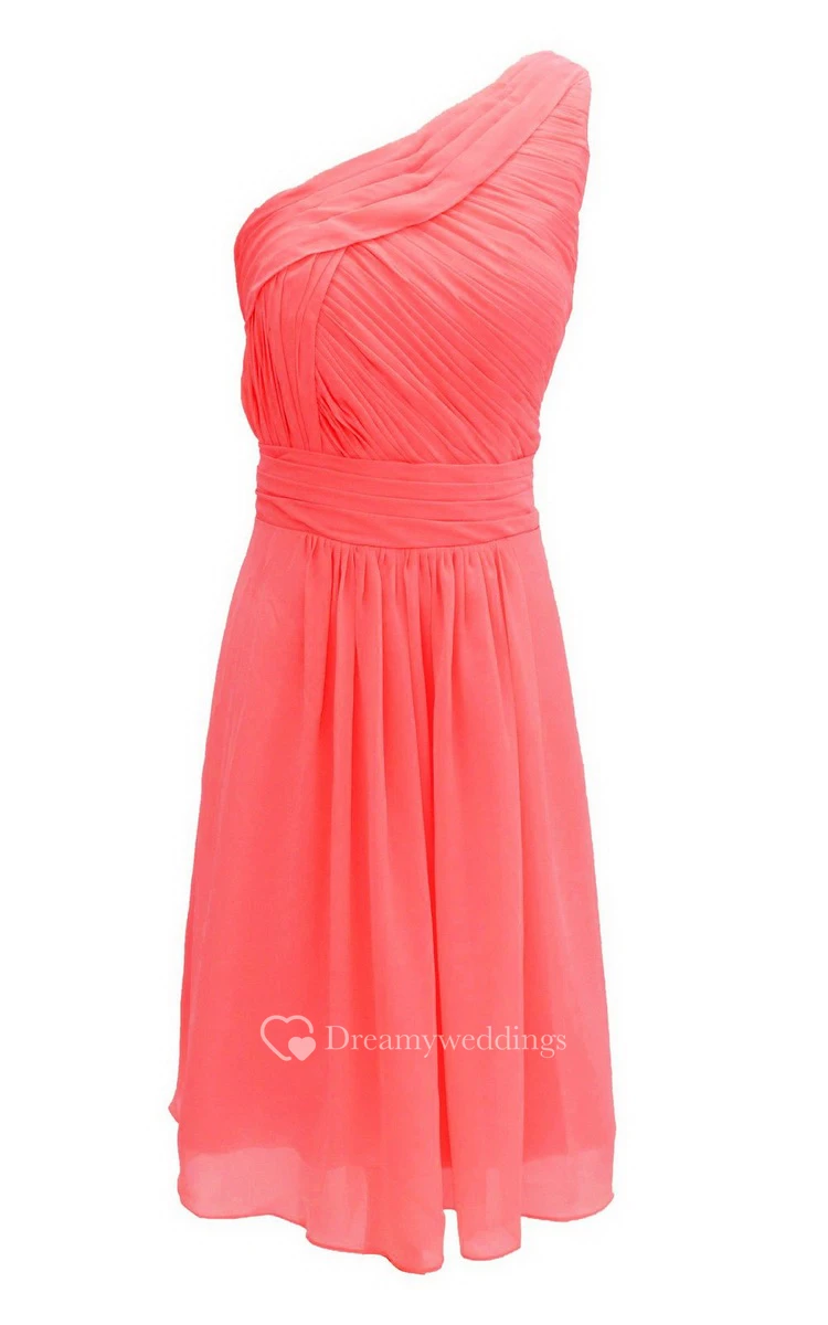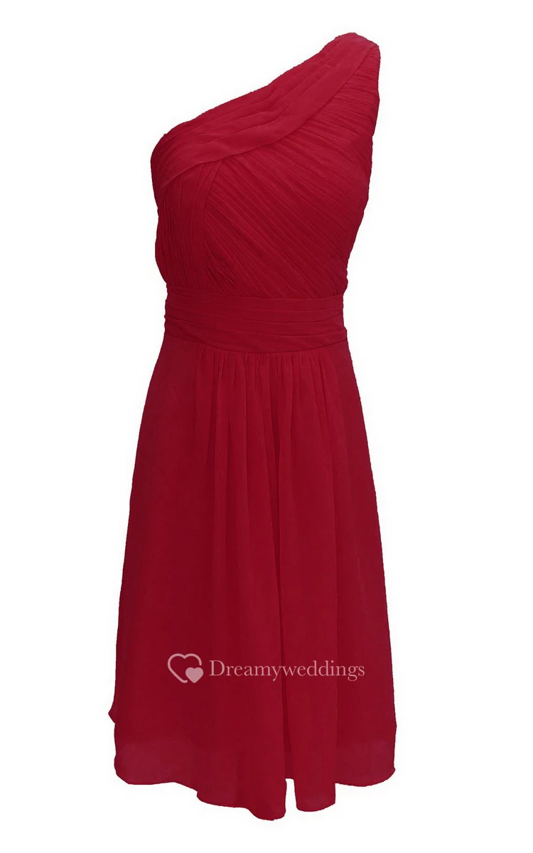 One-shoulder Ruched Chiffon A-line Short Dress With Band