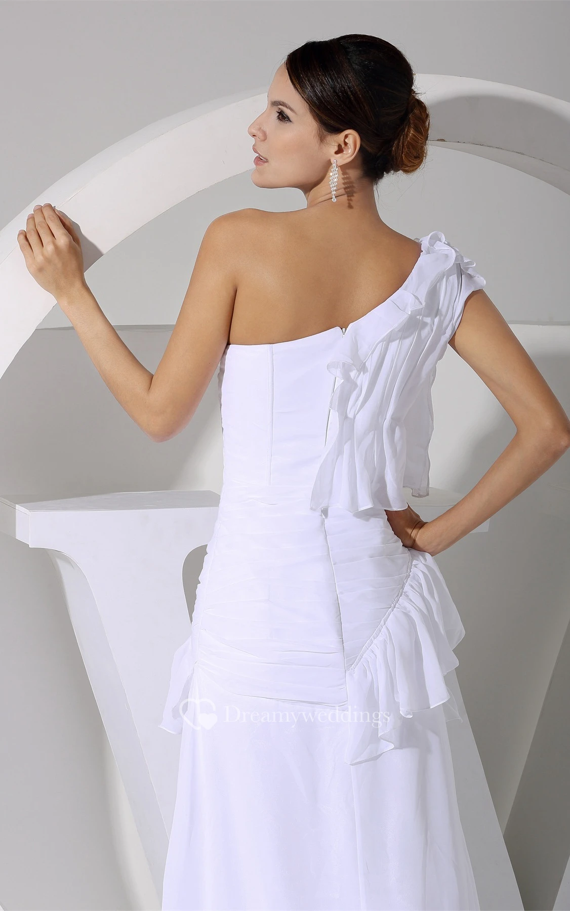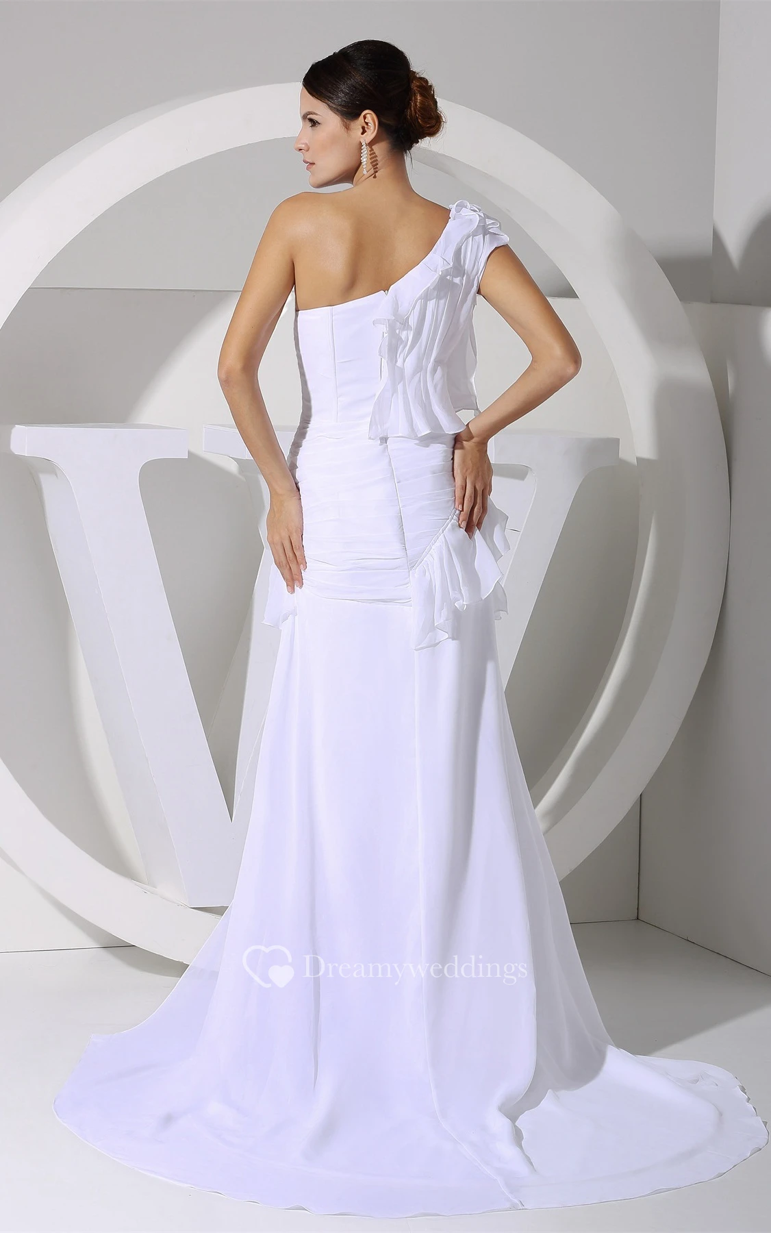 One-Shoulder Ruched Chiffon Front Slit and Dress With Peplum