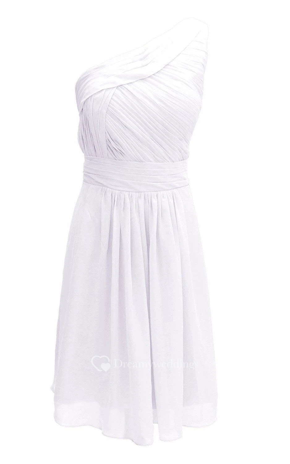 One-shoulder Ruched Knee-length Pleated Chiffon Dress