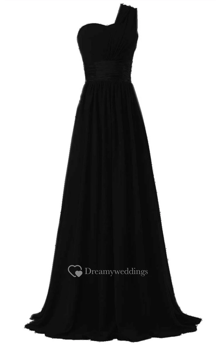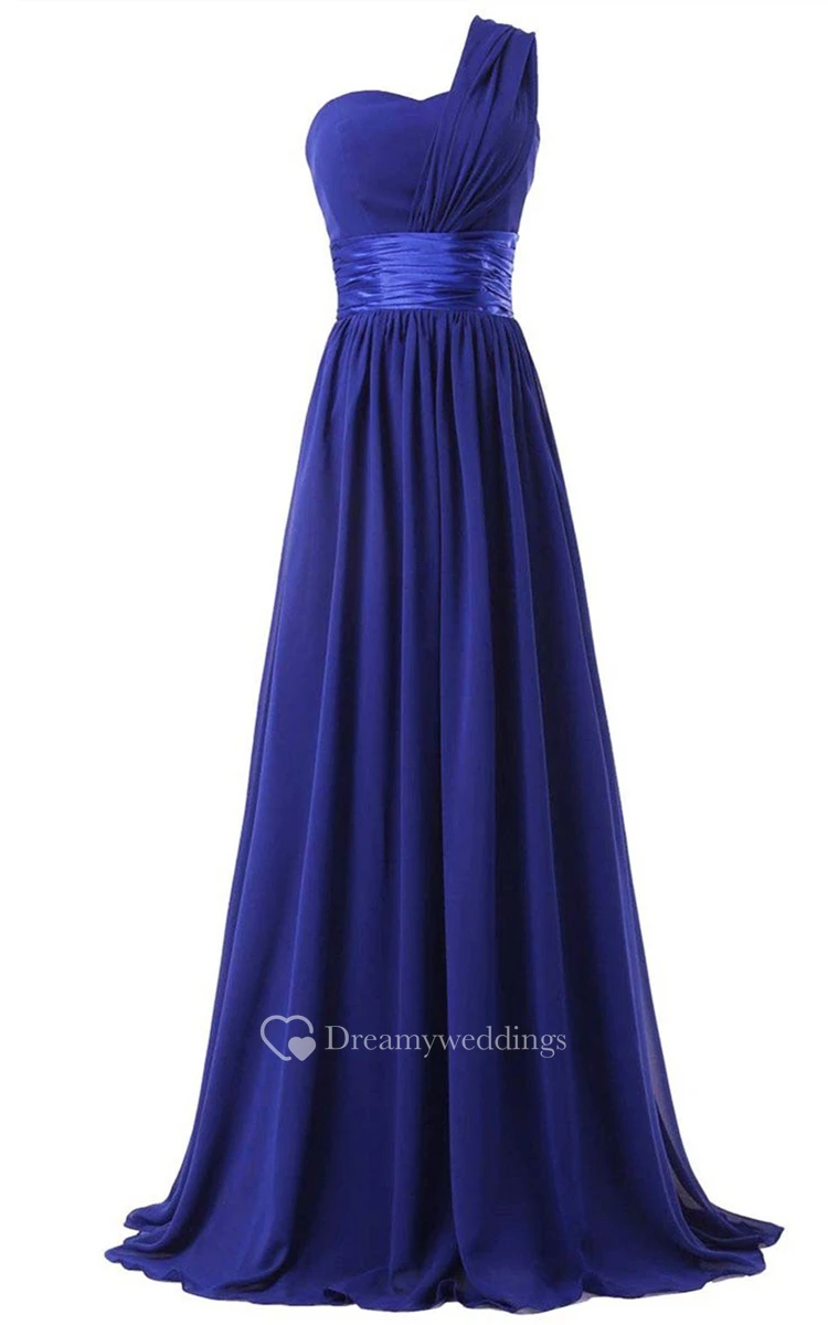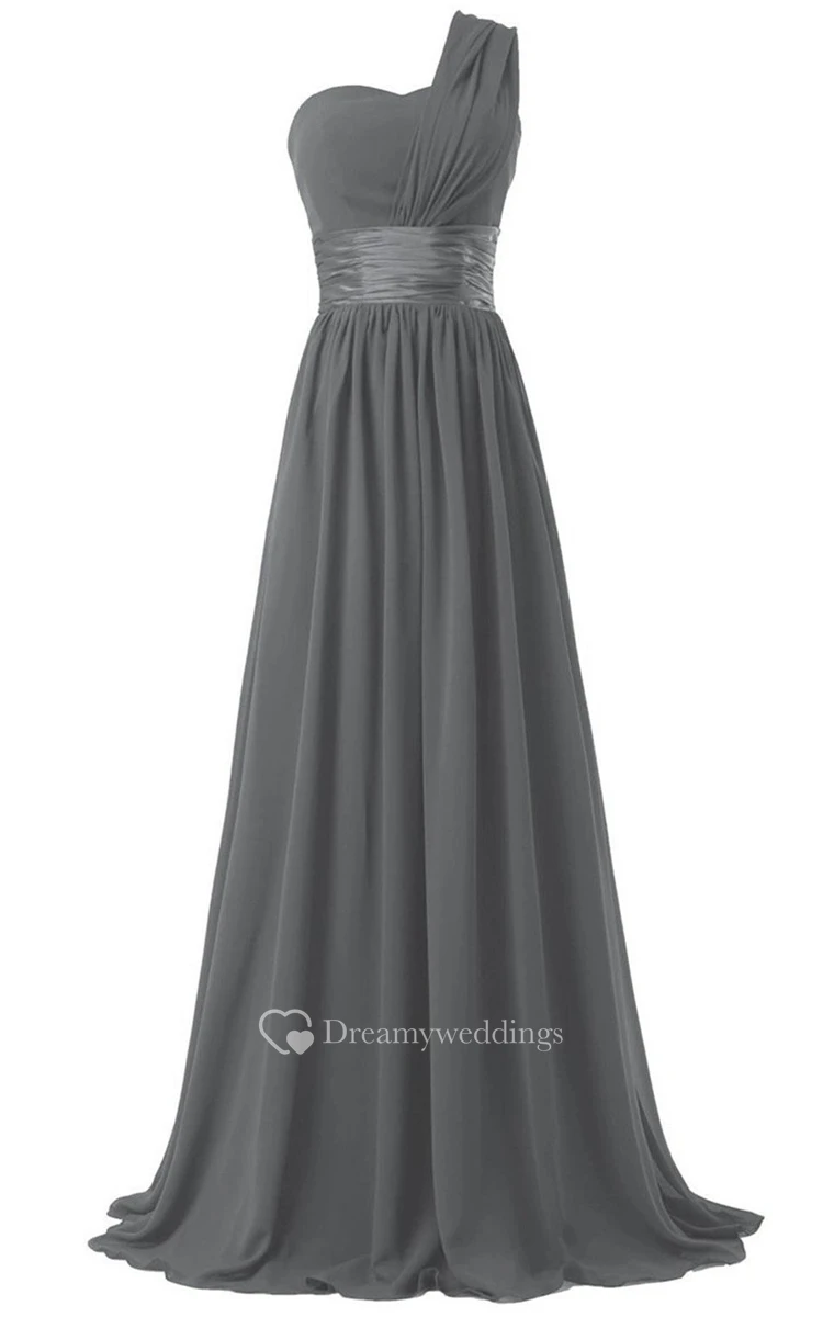 One-shoulder Ruched Sweep Train With Satin Belt