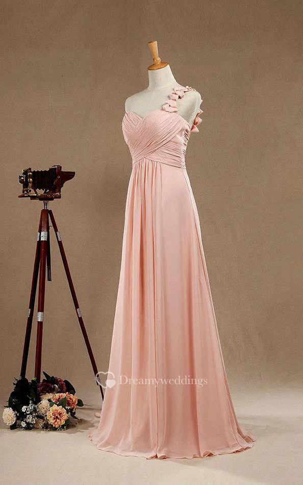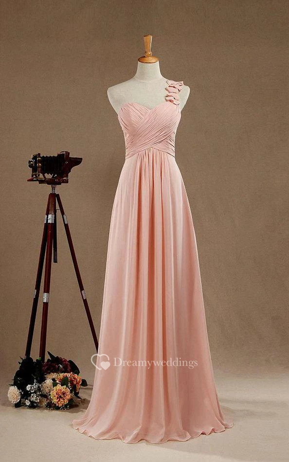 One Shoulder Ruched Top A-line Pleated Chiffon Long Dress