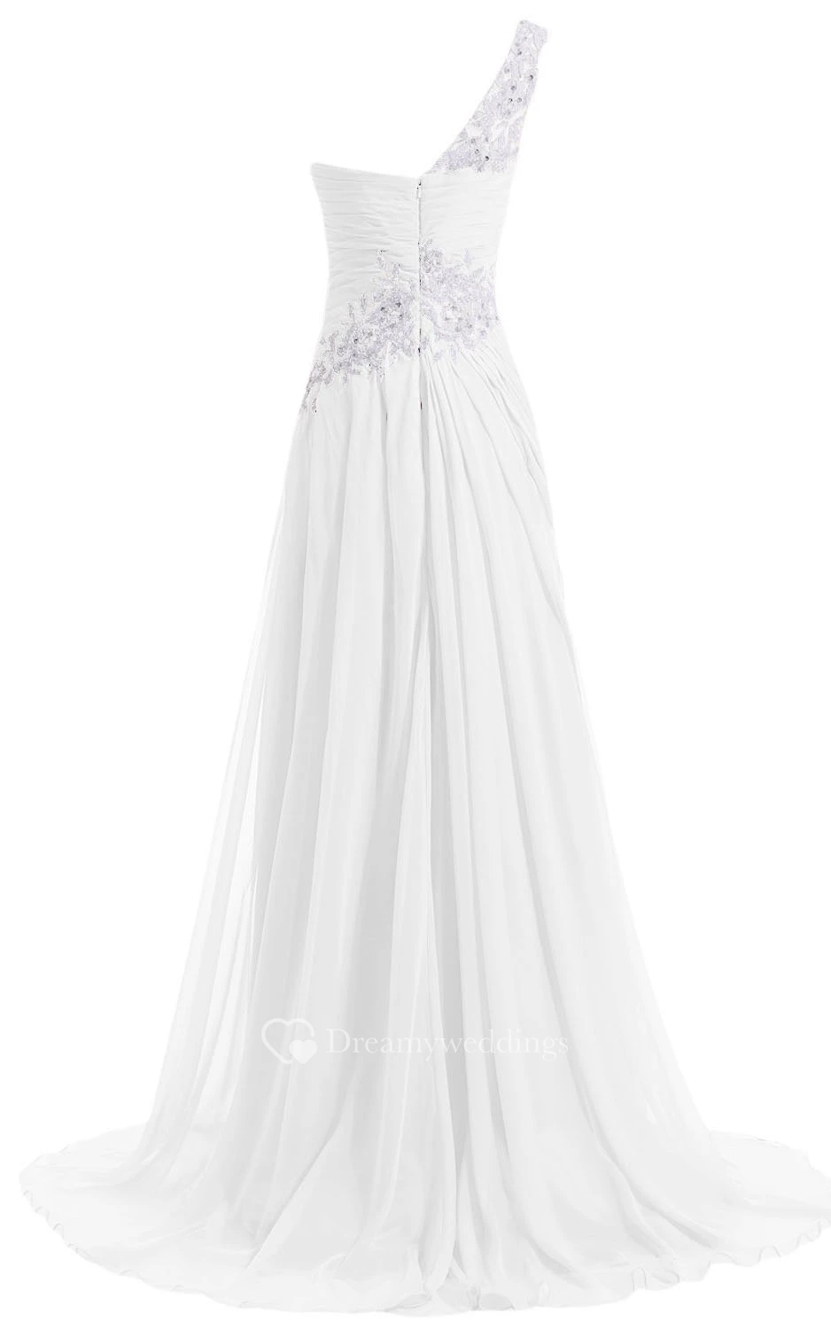 My dream prom dress. Great model and craft, the chiffon material is soft, breathable, and very comfortable, it also crinkled less than I expected. Very original one-shoulder design that looked classy but with a little twist.