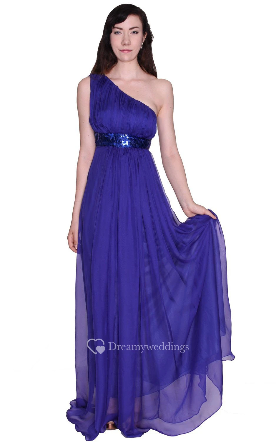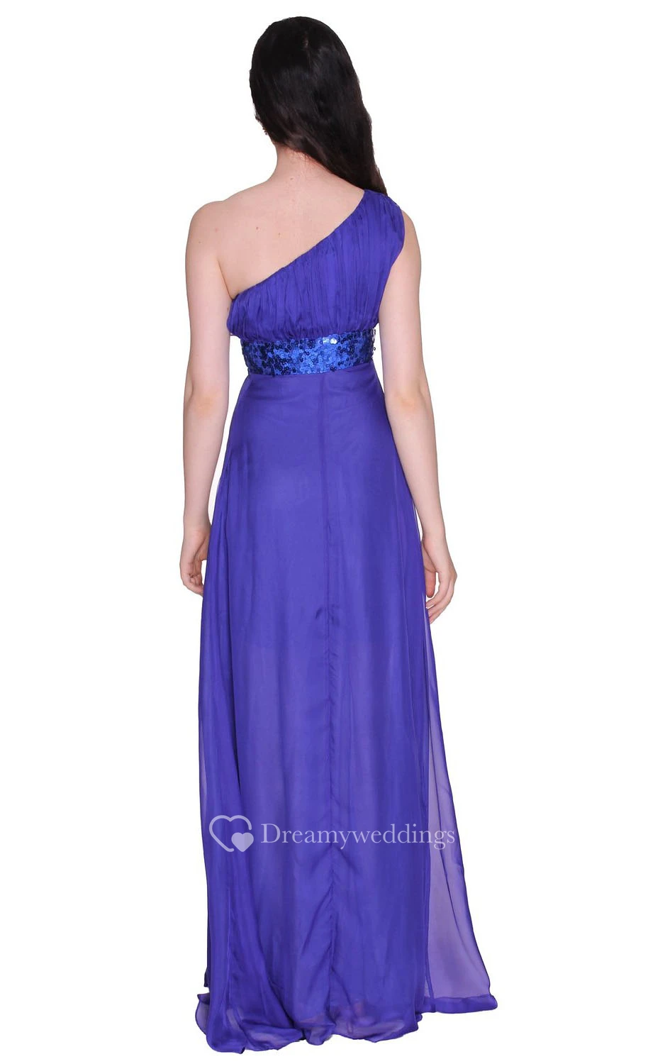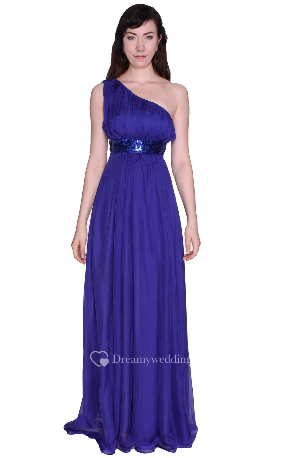 One-shoulder Sequined Waistband Long Pleated Chiffon Dress