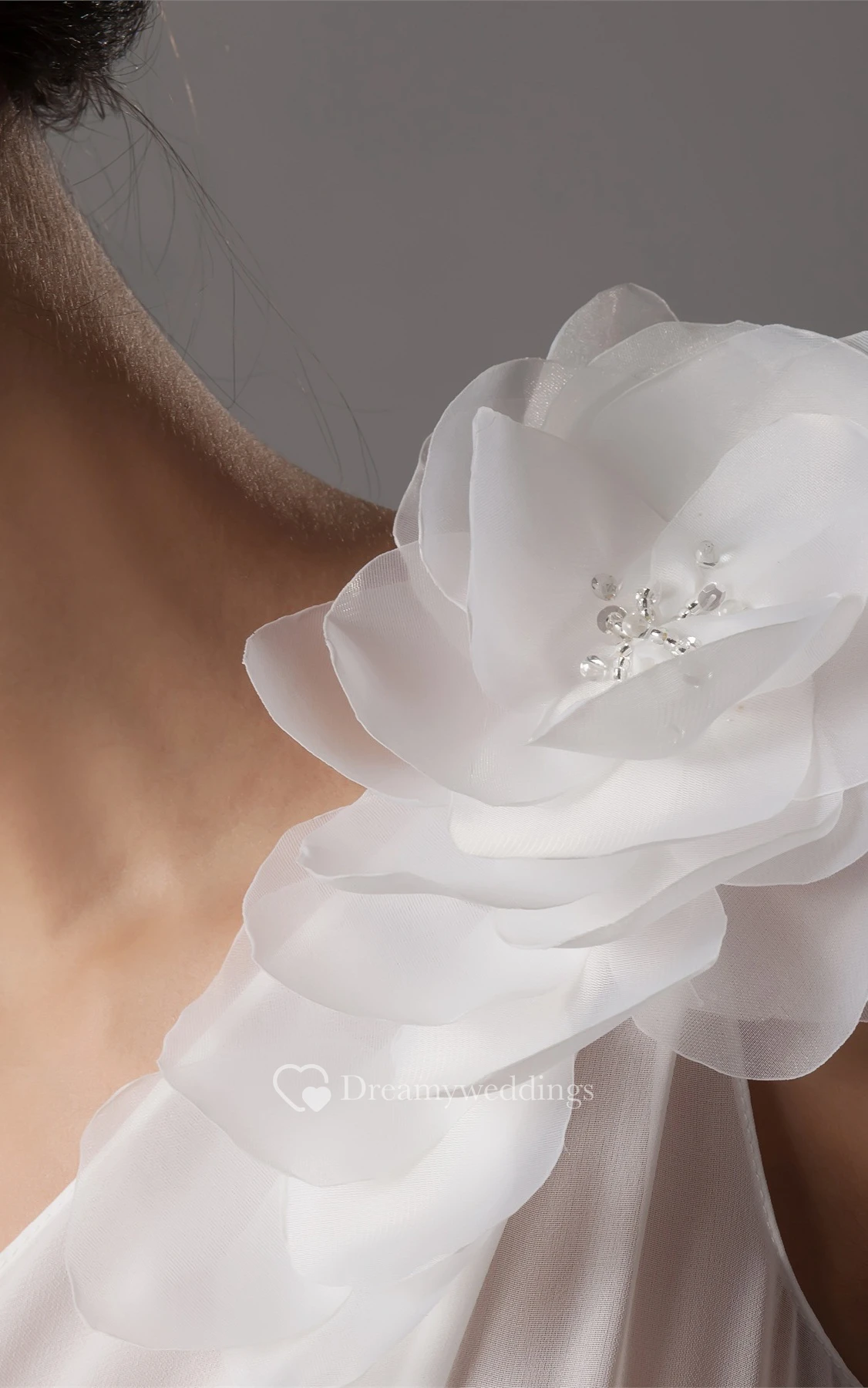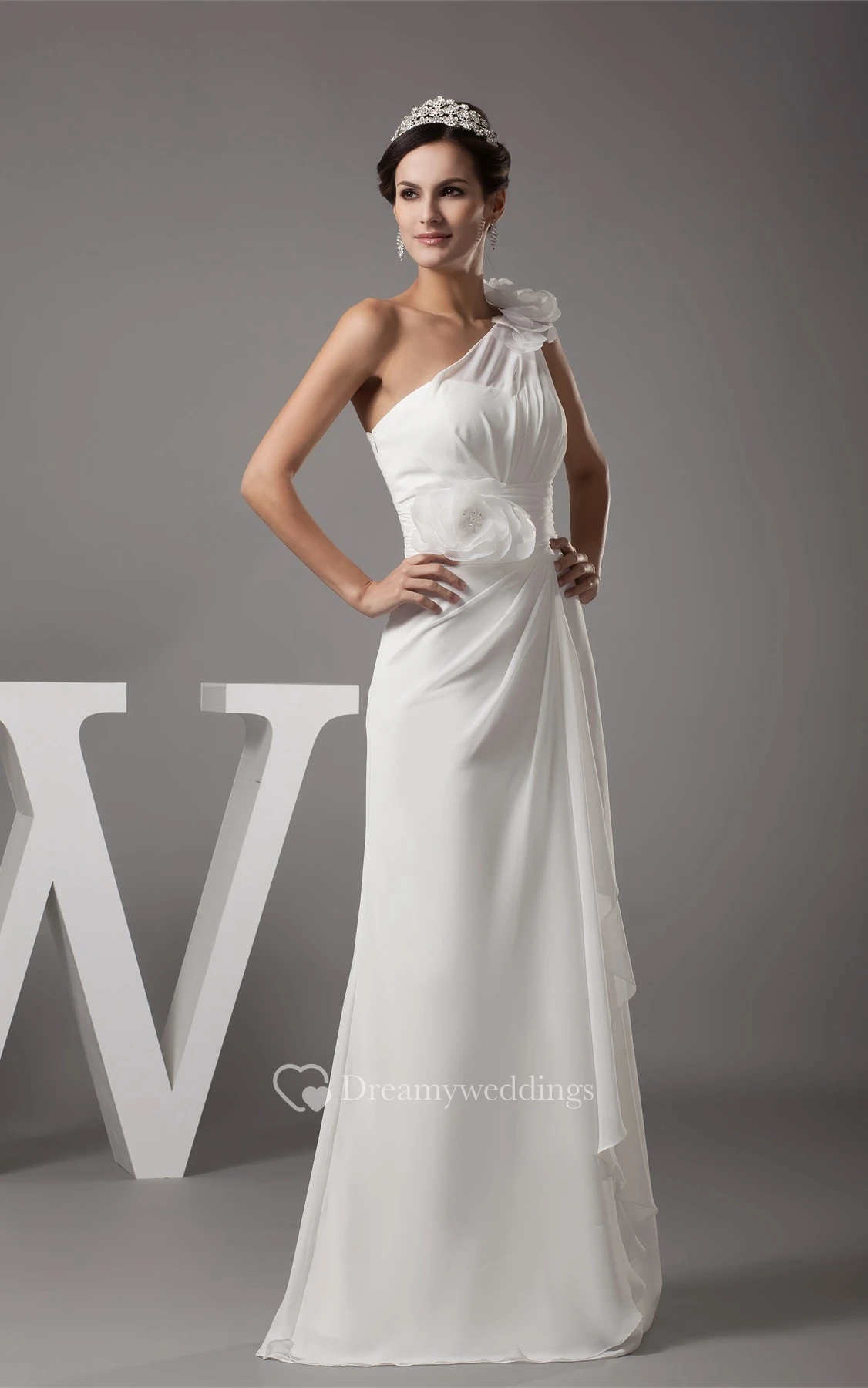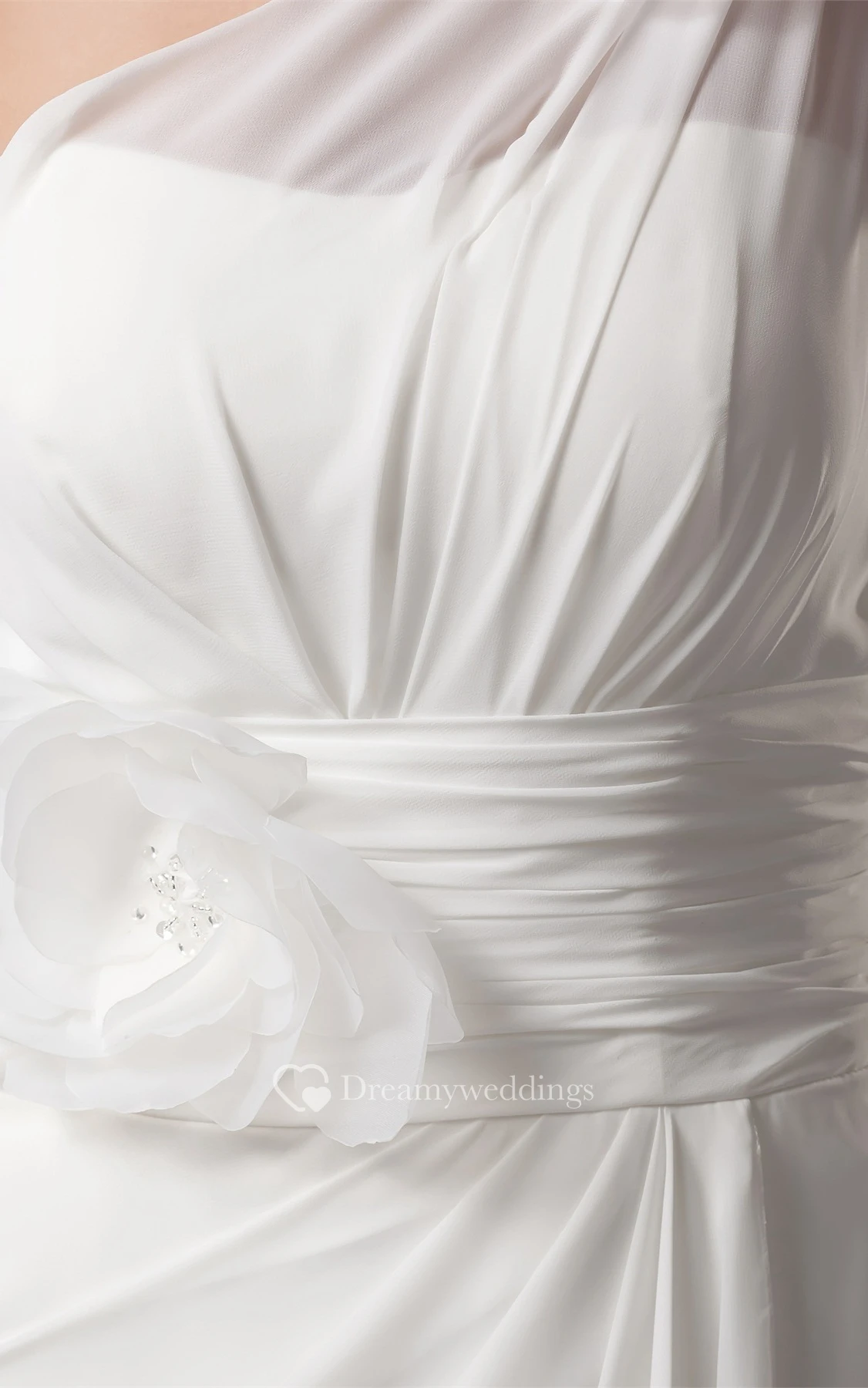 One-Shoulder Sheath Chiffon Dress With Floral Epaulet